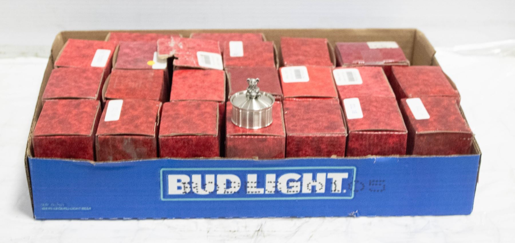 FLAT OF SMALL PEWTER BOXES