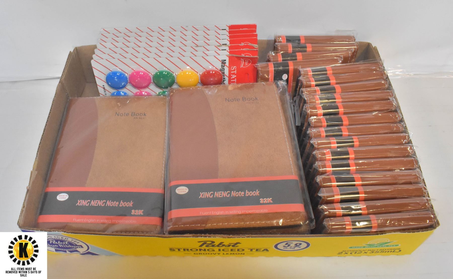 FLAT OF STATIONARY NOTEBOOKS ETC