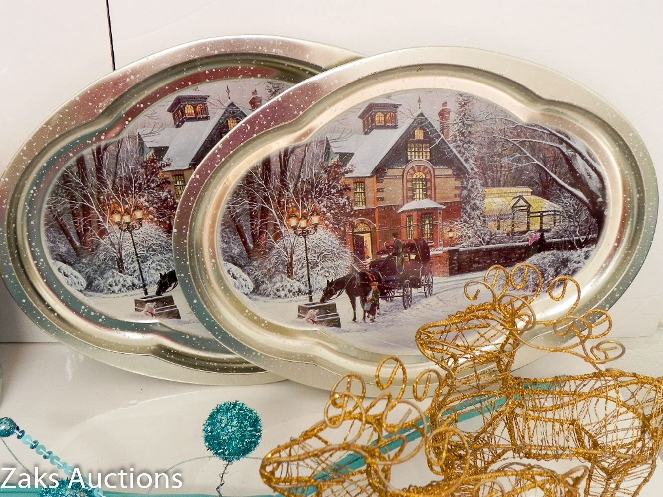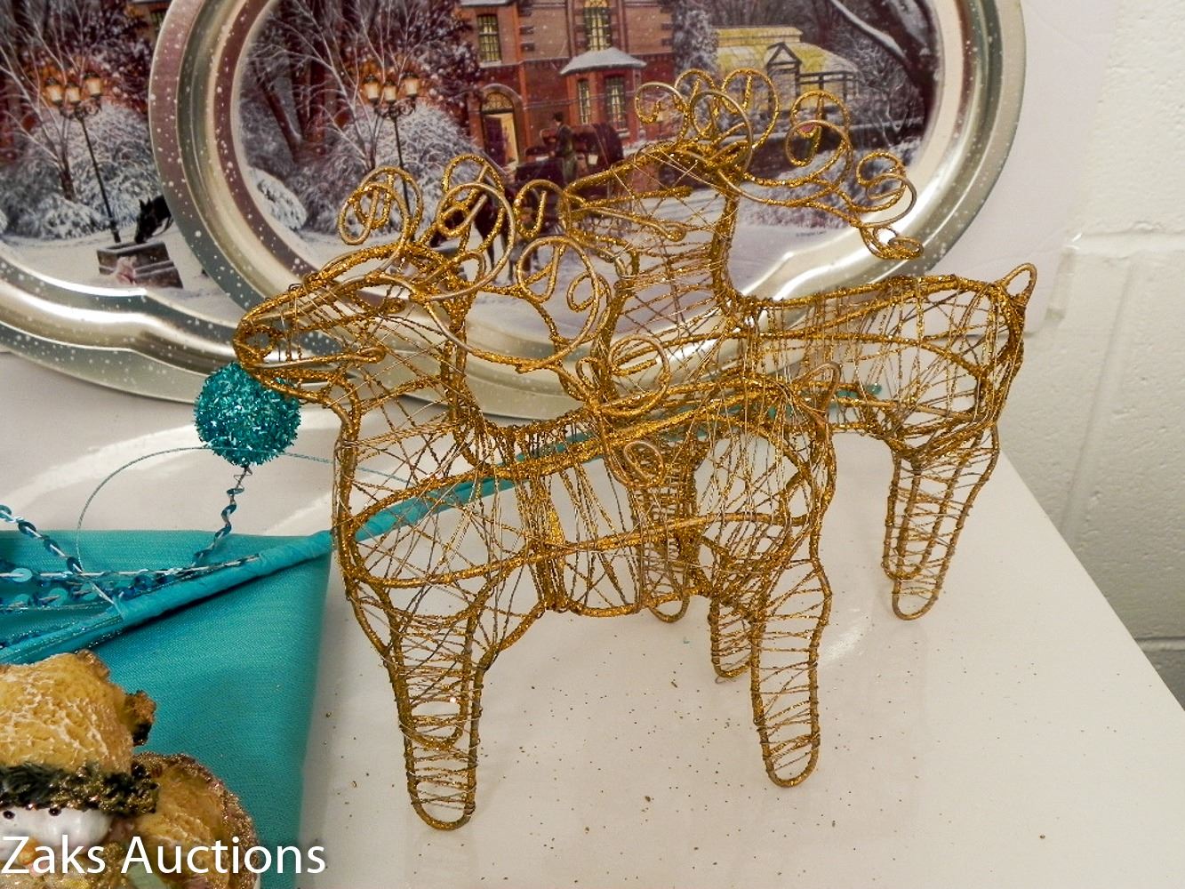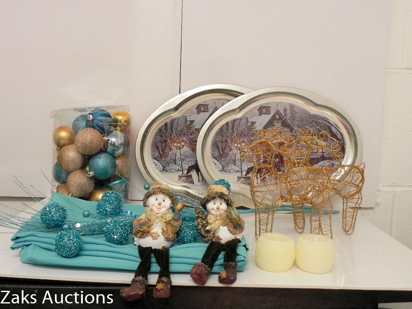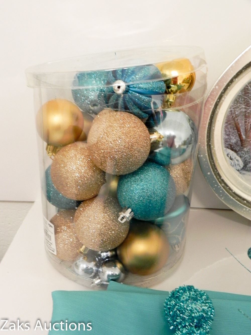 FLAT OF TEAL AND GOLD XMAS DECOR