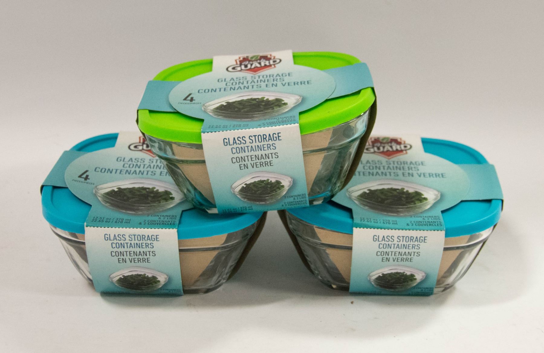 FLAT OF THREE,4PCS GLASS FOOD CONTAINERS