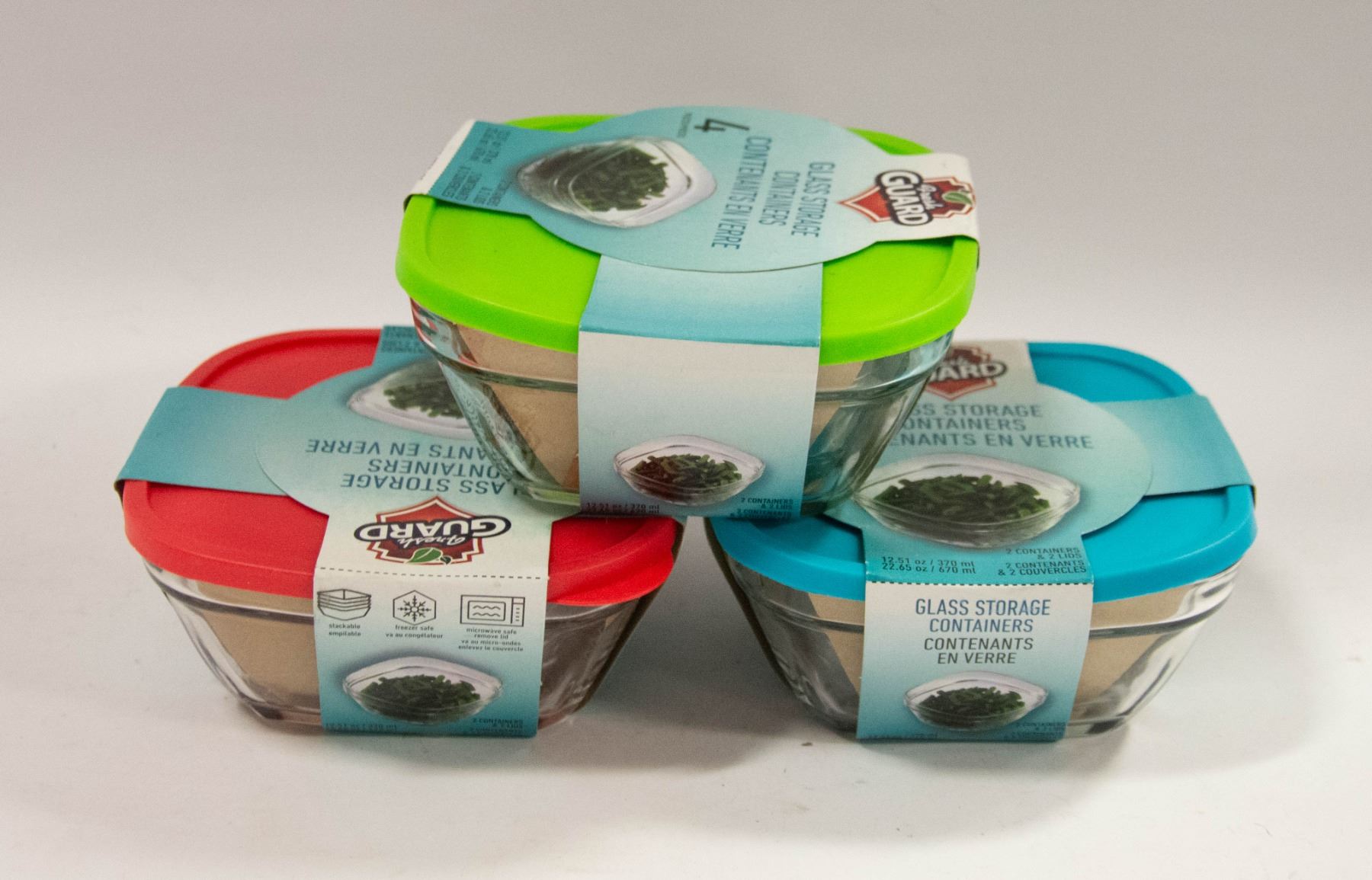 FLAT OF THREE,4PCS GLASS FOOD CONTAINERS
