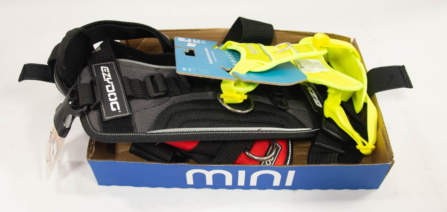 FLAT OF THREE MEDIUM DOG HARNESSES