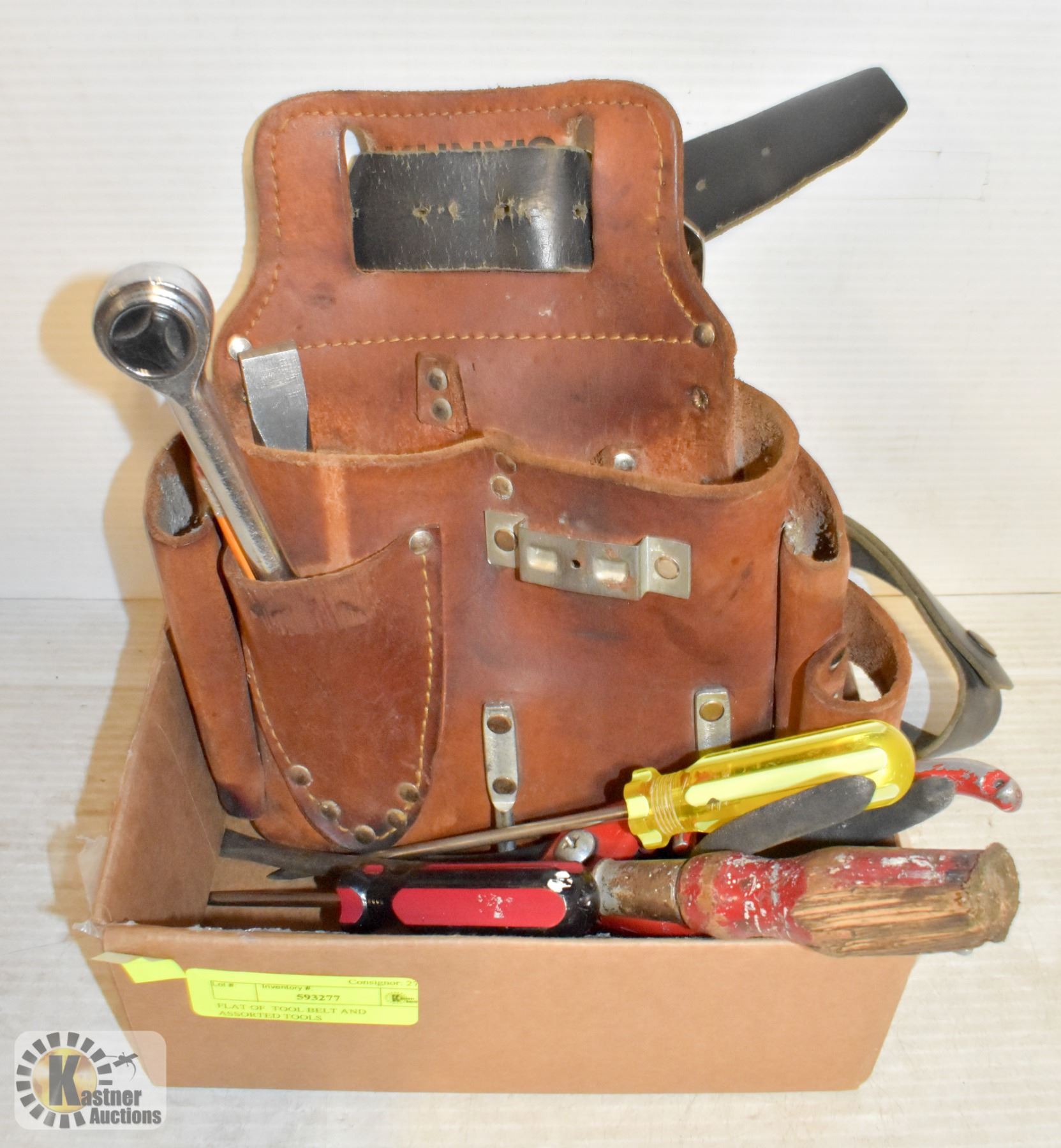FLAT OF TOOL BELT AND ASSORTED TOOLS