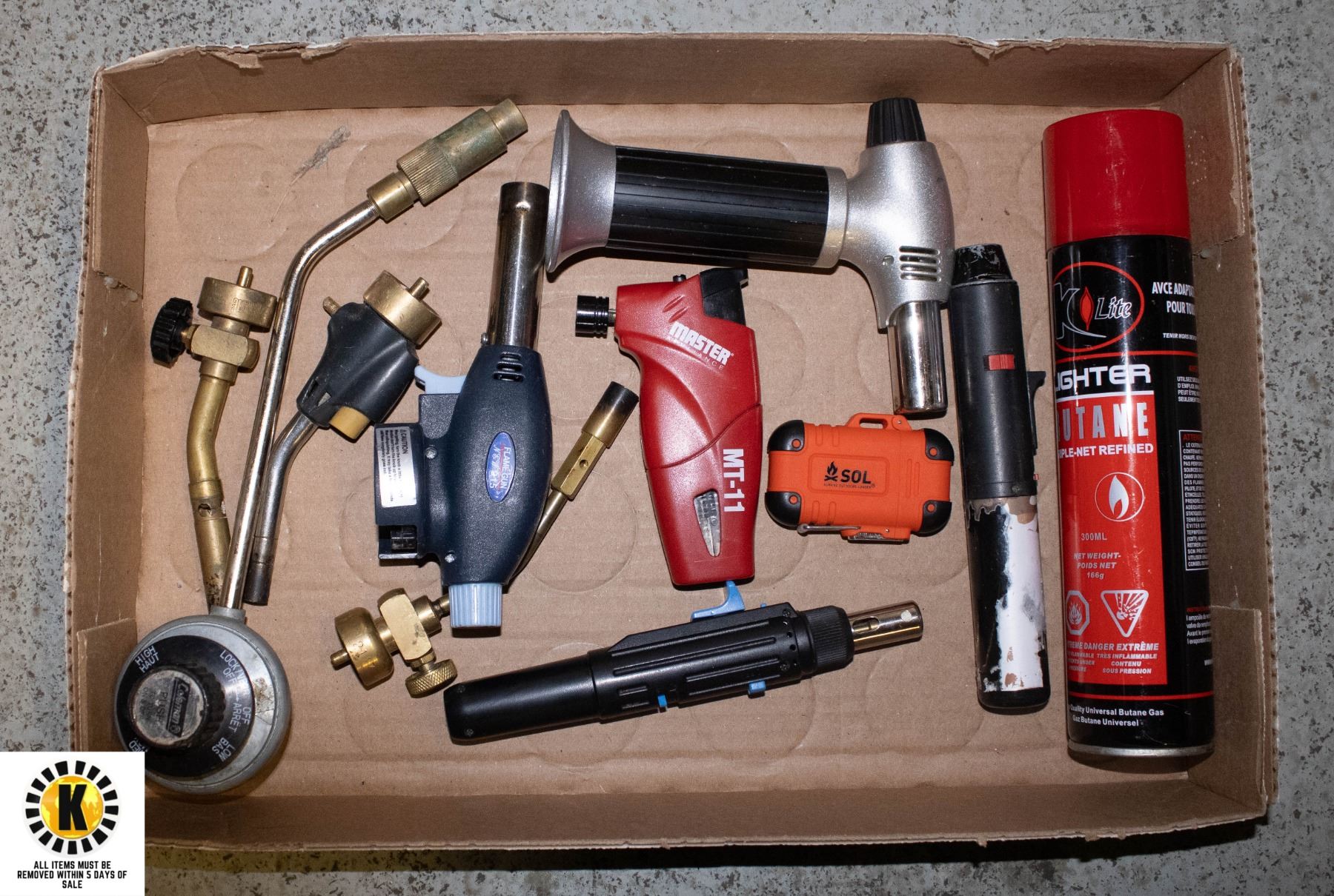 FLAT OF TORCHES/TORCH ATTACHEMENTS PLUS BUTANE