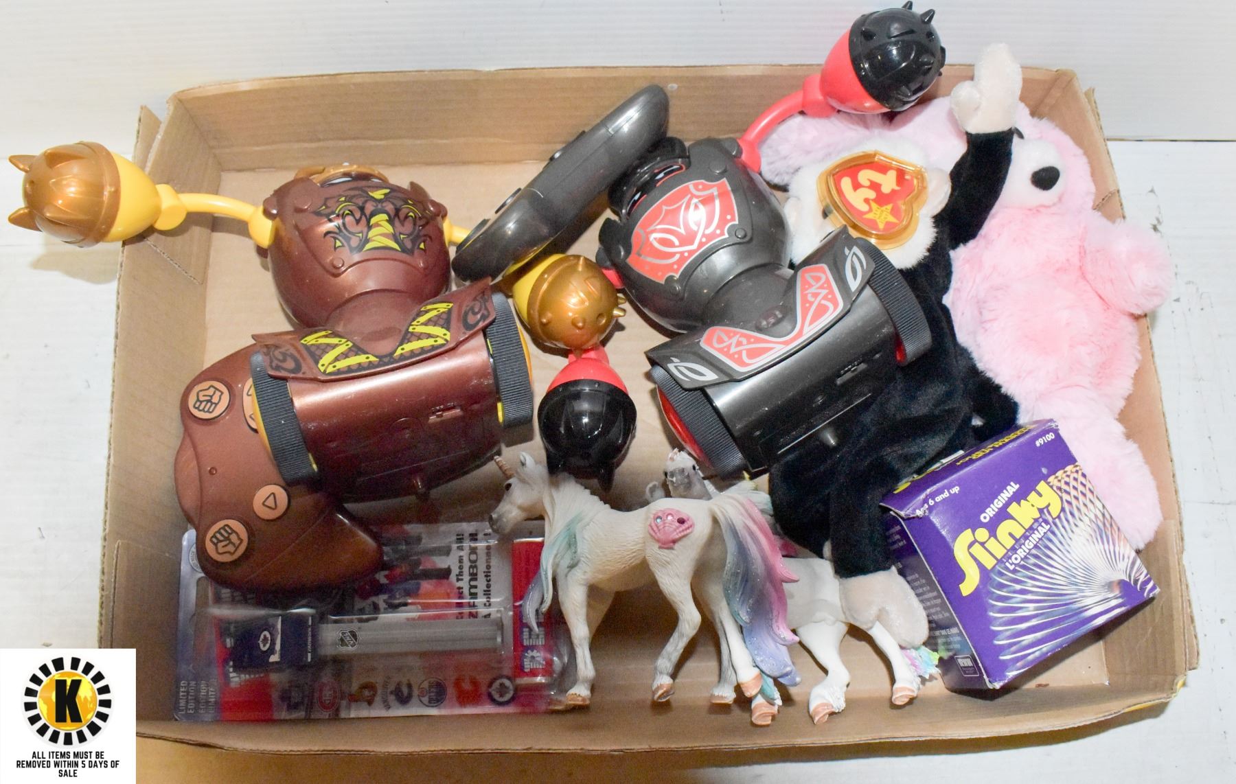 FLAT OF TY,SCHLEICH,SLINKY & REMOTE ROBOTS TOGETHE
