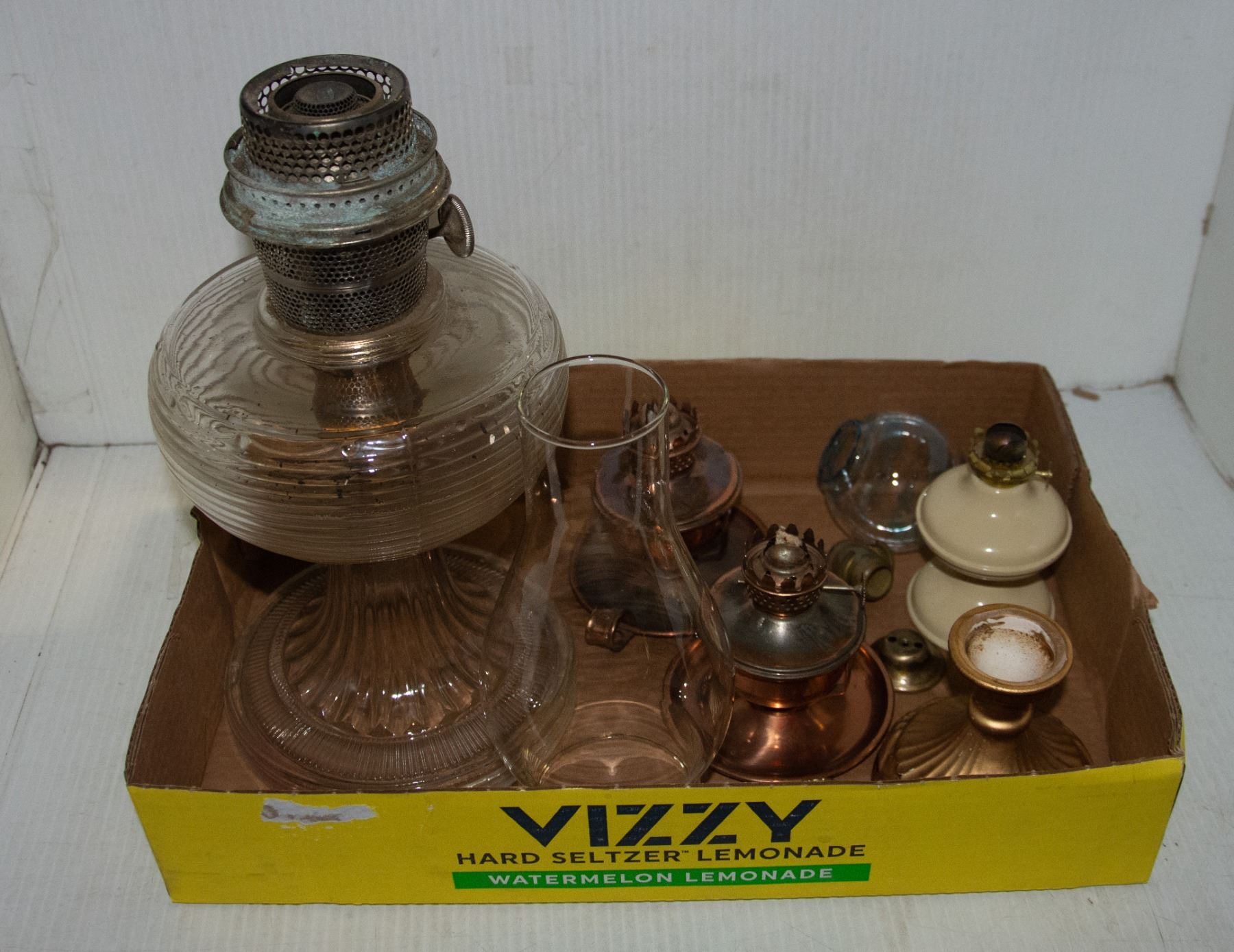 FLAT OF VARIOUS OIL LAMPS & ATTACHMENTS