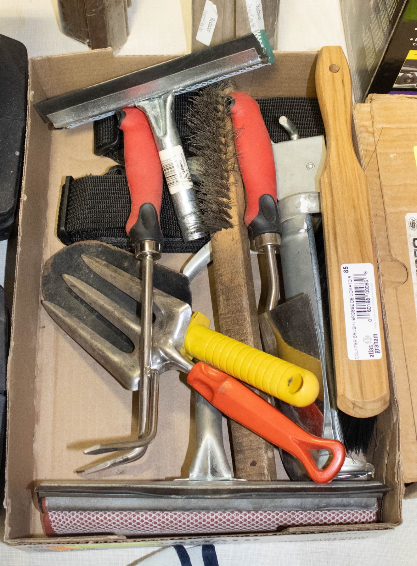 FLAT OF VARIOUS TOOLS AND GARDENING ACCESSORIES