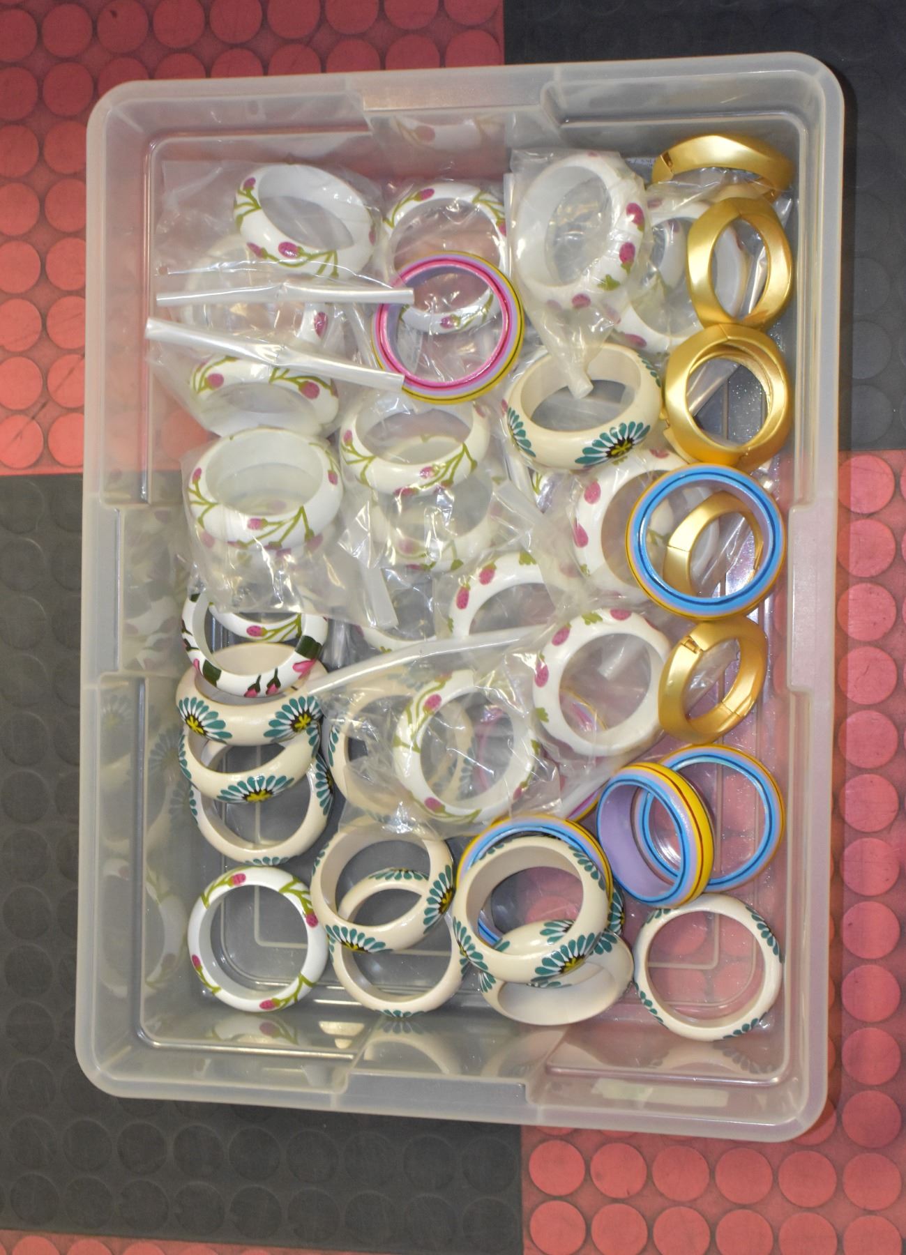 FLAT OF VARIOUS WOOD FASHION BRACELETS NEW