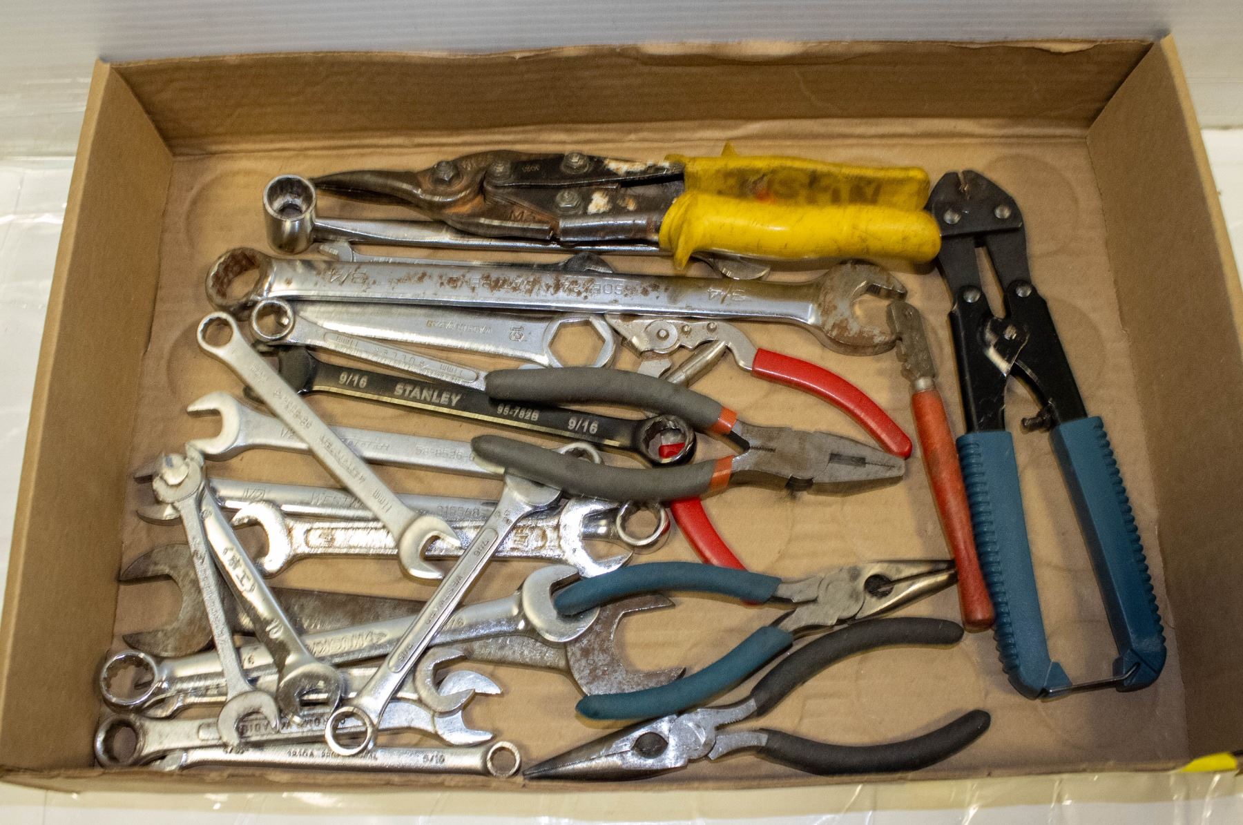 FLAT OF VARIOUS WRENCHES AND PLIERS AND CUTTERS