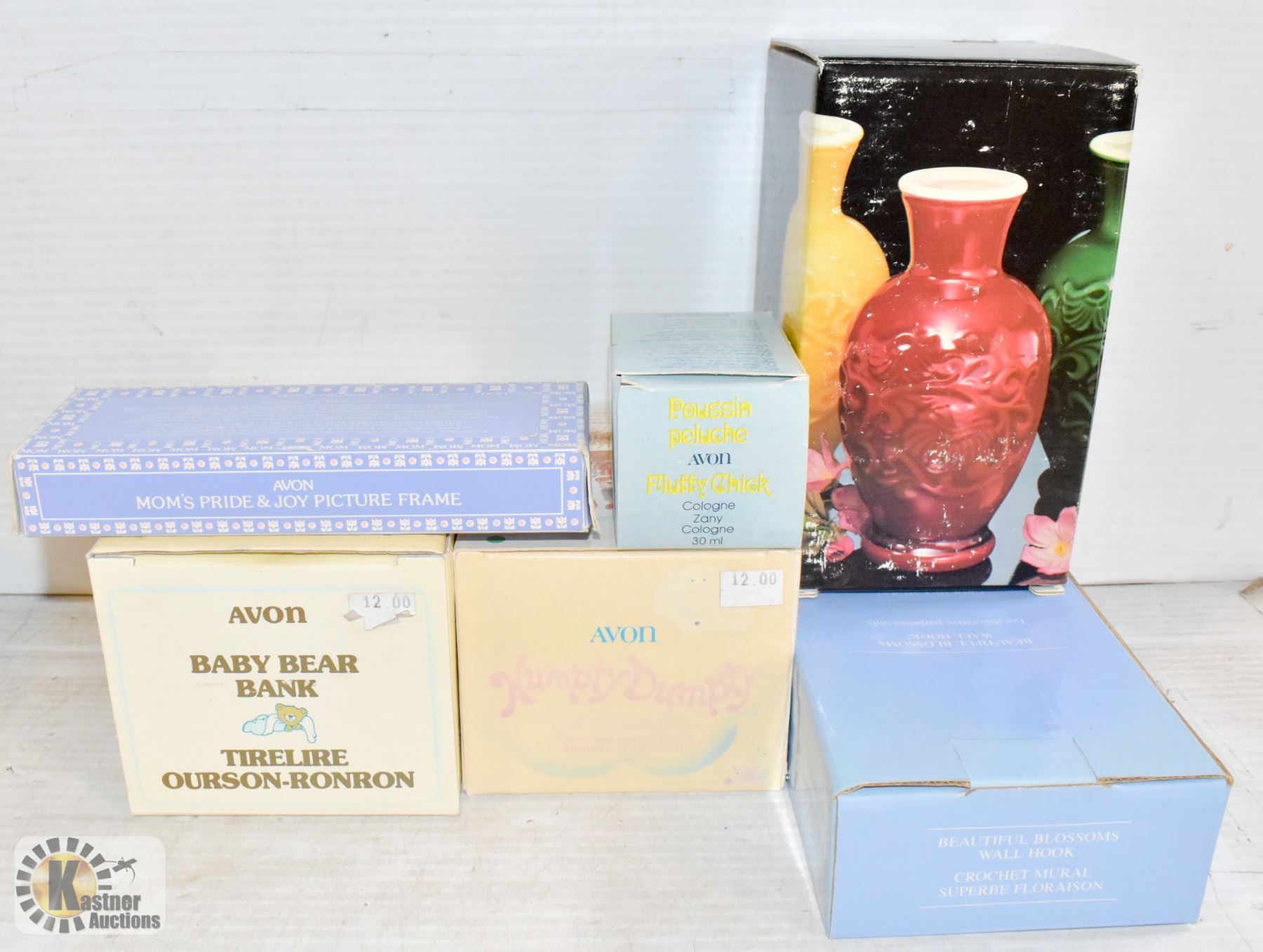 6 PIECES - 2 BANKS, VASE, WALL HOOK, 'MOM' PAPERWEIGHT/FRAME, COLOGNE