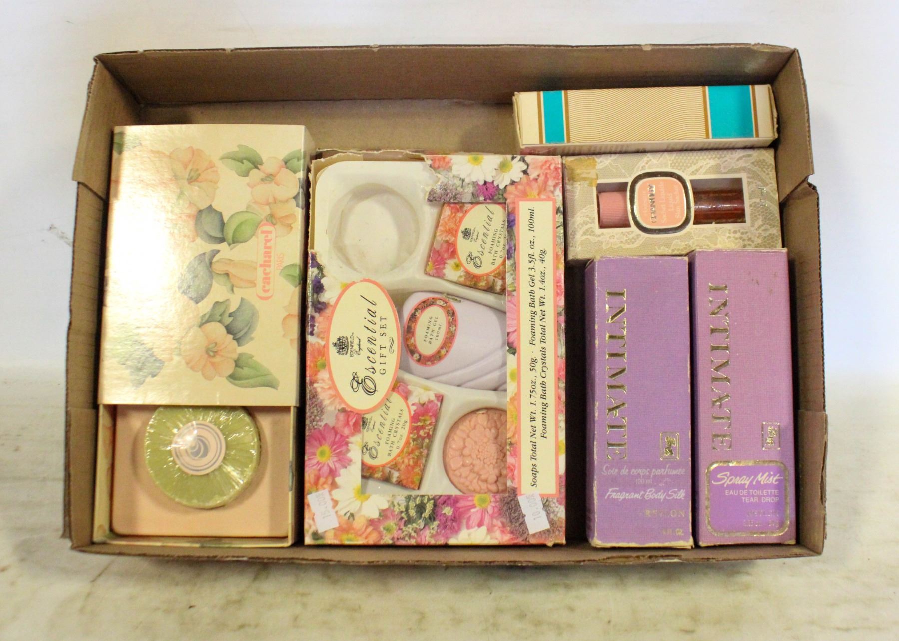 FLAT OF VINTAGE BATHROOM TOILETRY ITEMS