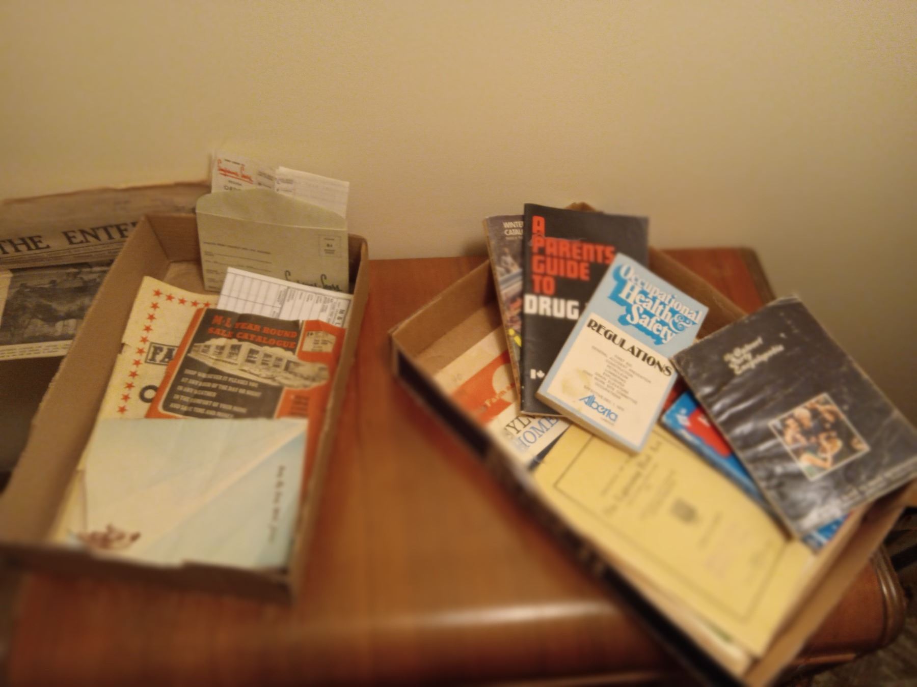 FLAT OF VINTAGE BOOKS (DRUGS, OH&S, HEALTH, SEX & BIRTH) & FLAT OF CATALOGUES (VINTAGE). (SEE IMAGES).