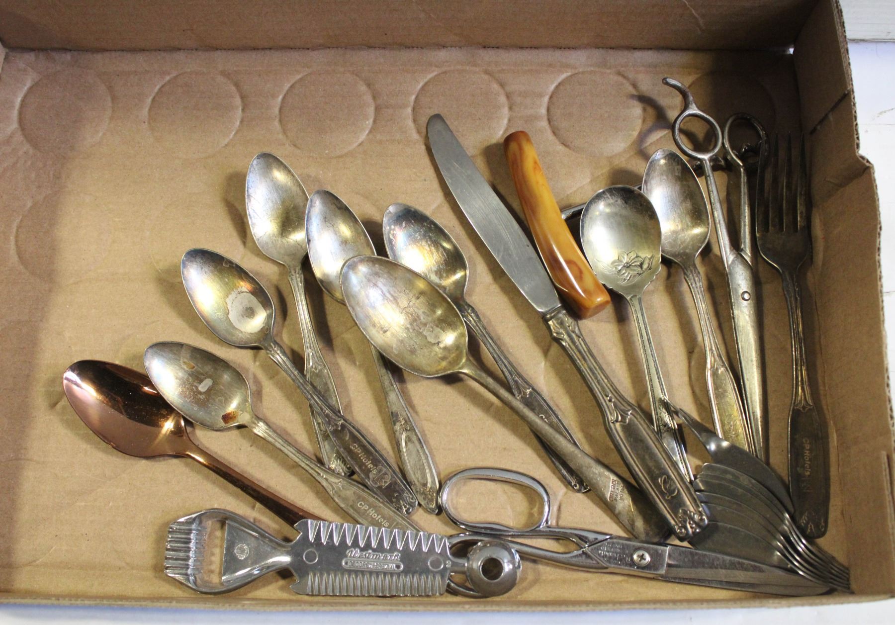 FLAT OF VINTAGE CUTLERY & SCISSORSÿ