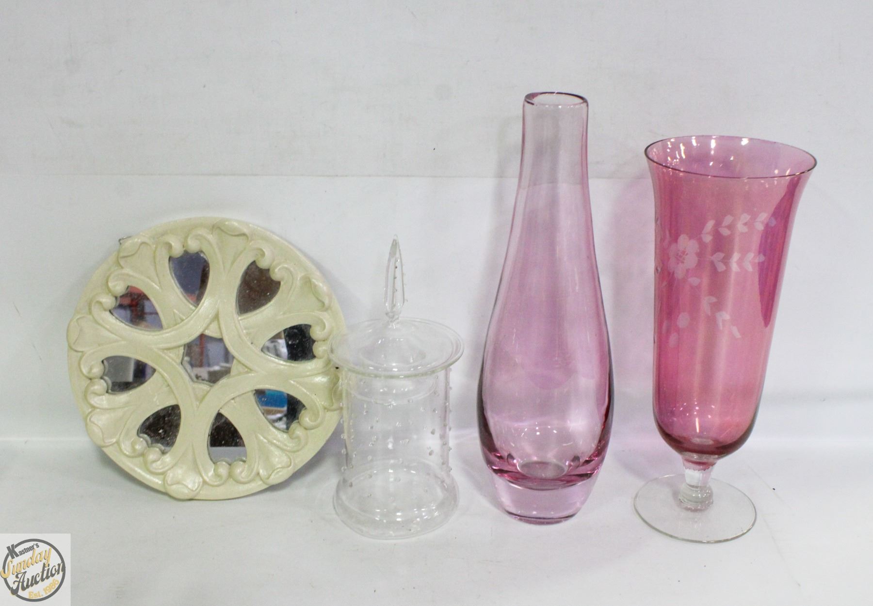 CREAM MIRROR AND GLASS JAR **ALL ITEMS MUST BE REMOVED BY 5PM SATURDAY, NOVEMBER 22ND 2025. ALL REMAINING ITEMS WILL BE SUBJECT TO A $6.00 PER DAY STORAGE CHARGE. ANY ITEMS REMAINING AFTER MONDAY, DECEMBER 8TH 2025 WILL BE CONSIDERED FORFEITED. NO REFUNDS WILL BE ISSUED FOR FORFEITED ITEMS. TO SCHEDULE A PICK UP APPOINTMENT CLICK HERE