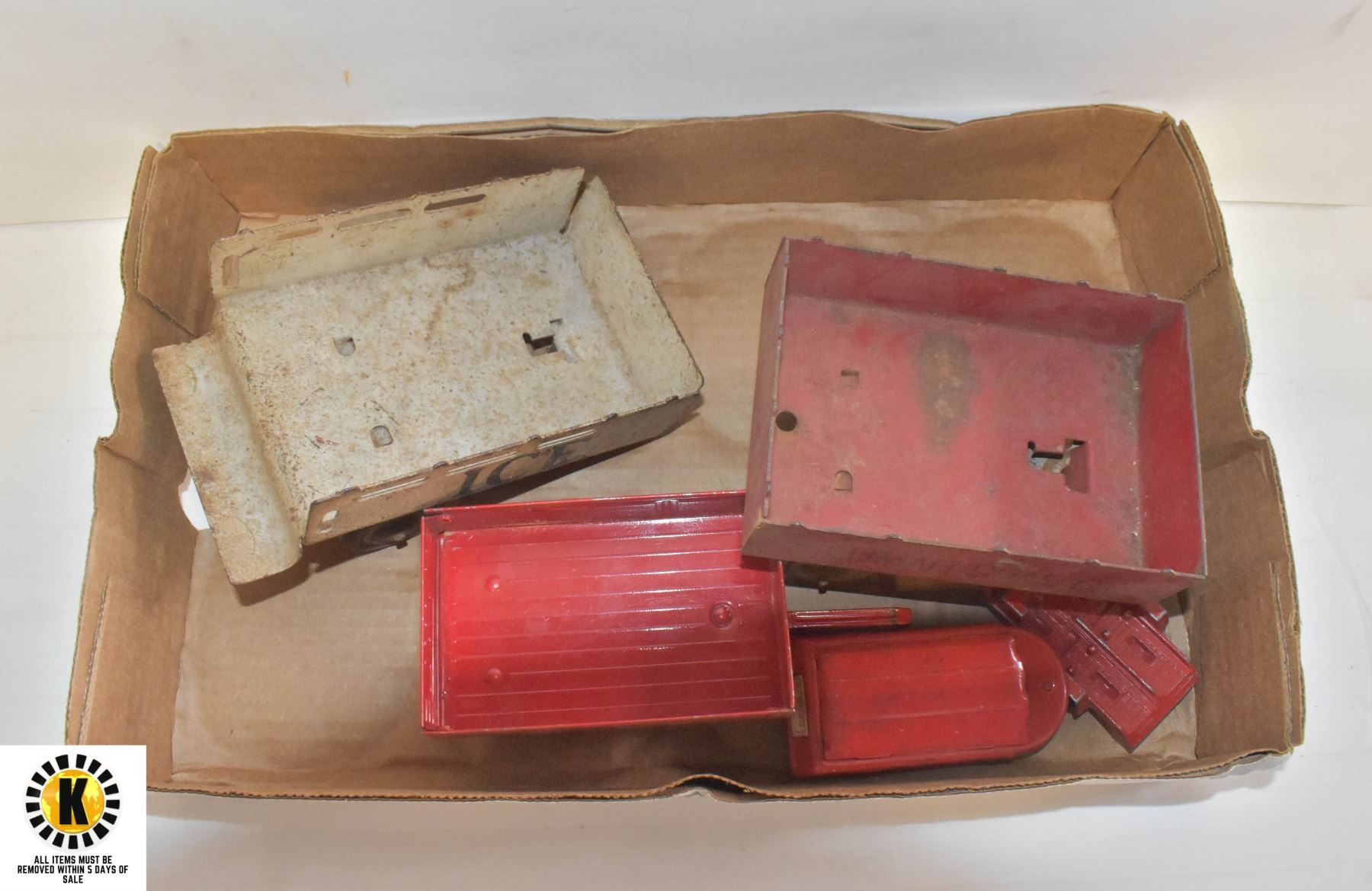 FLAT OF VINTAGE TOYS MOSTLY METAL + TRAILERS