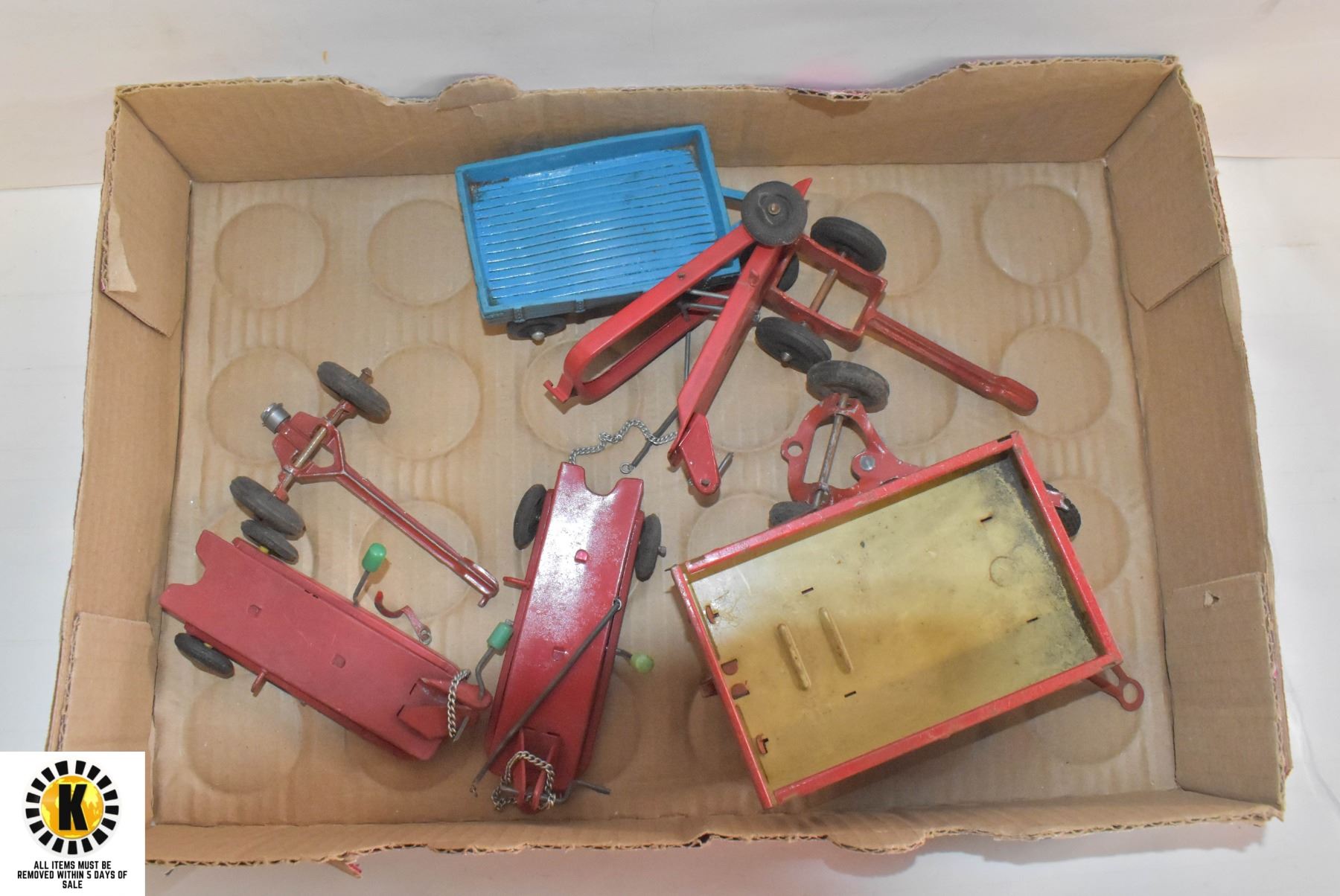 FLAT OF VINTAGE TOYS MOSTLY METAL + TRAILERS