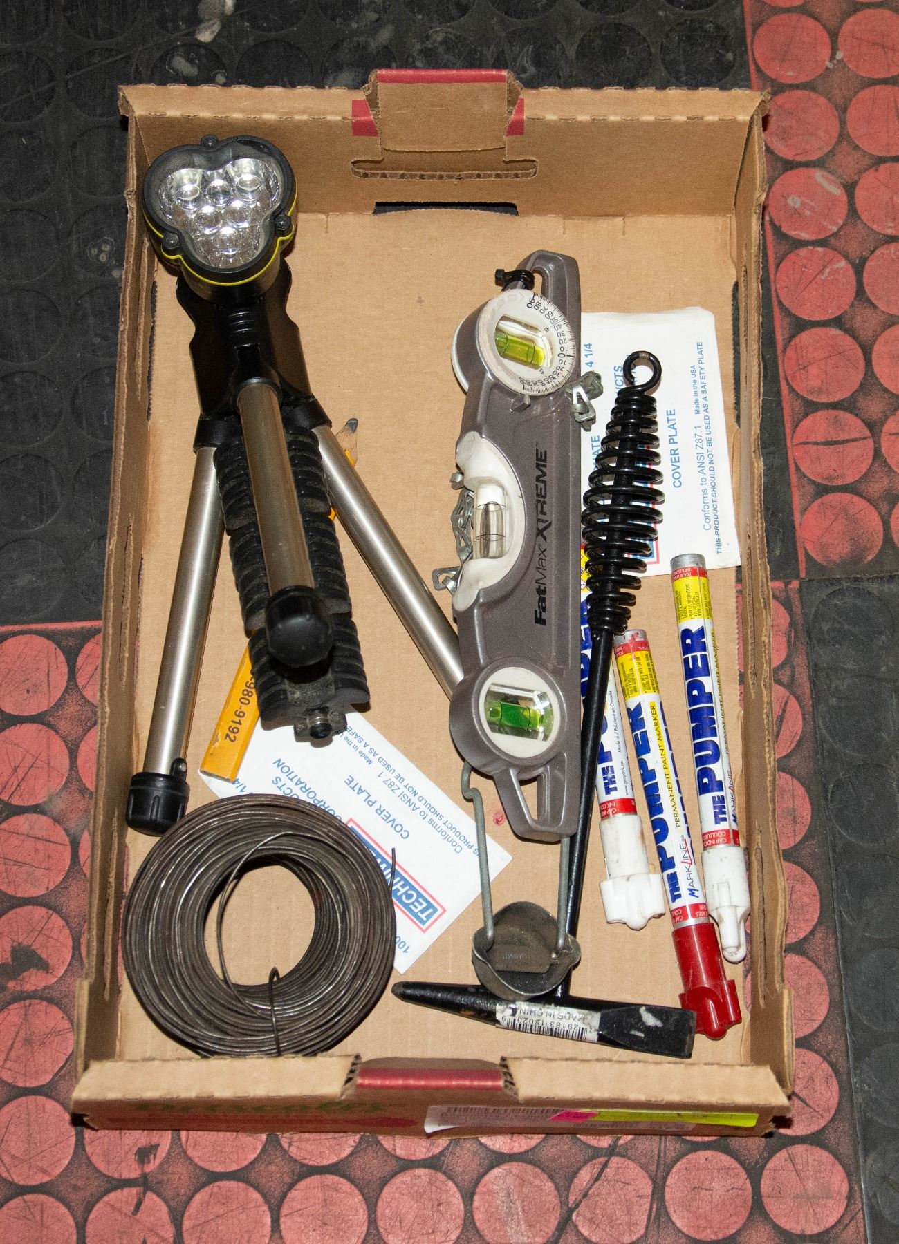 FAT MAX XTREME MAGNETIC LEVEL, NEW COVER PLATES, SPARKER, CHIPPING HAMMER, ROLL OF MECHANIC WIRE, TRI-POD LED LIGHT, ETC. **ALL ITEMS MUST BE REMOVED BY 5PM SATURDAY, FEBRUARY 3RD 2024. ALL REMAINING ITEMS WILL BE SUBJECT TO A $6.00 PER DAY STORAGE CHARGE. ANY ITEMS REMAINING AFTER MONDAY, FEBRUARY 19TH, 2023 WILL BE CONSIDERED FORFEITED. NO REFUNDS WILL BE ISSUED FOR FORFEITED ITEMS. TO SCHEDULE A PICK UP APPOINTMENT CLICK HERE