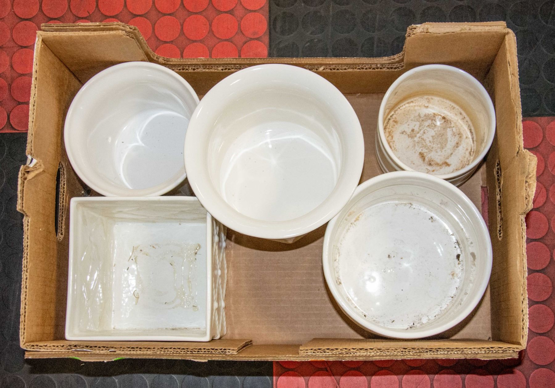 FLAT OF WHITE CERAMIC POTS