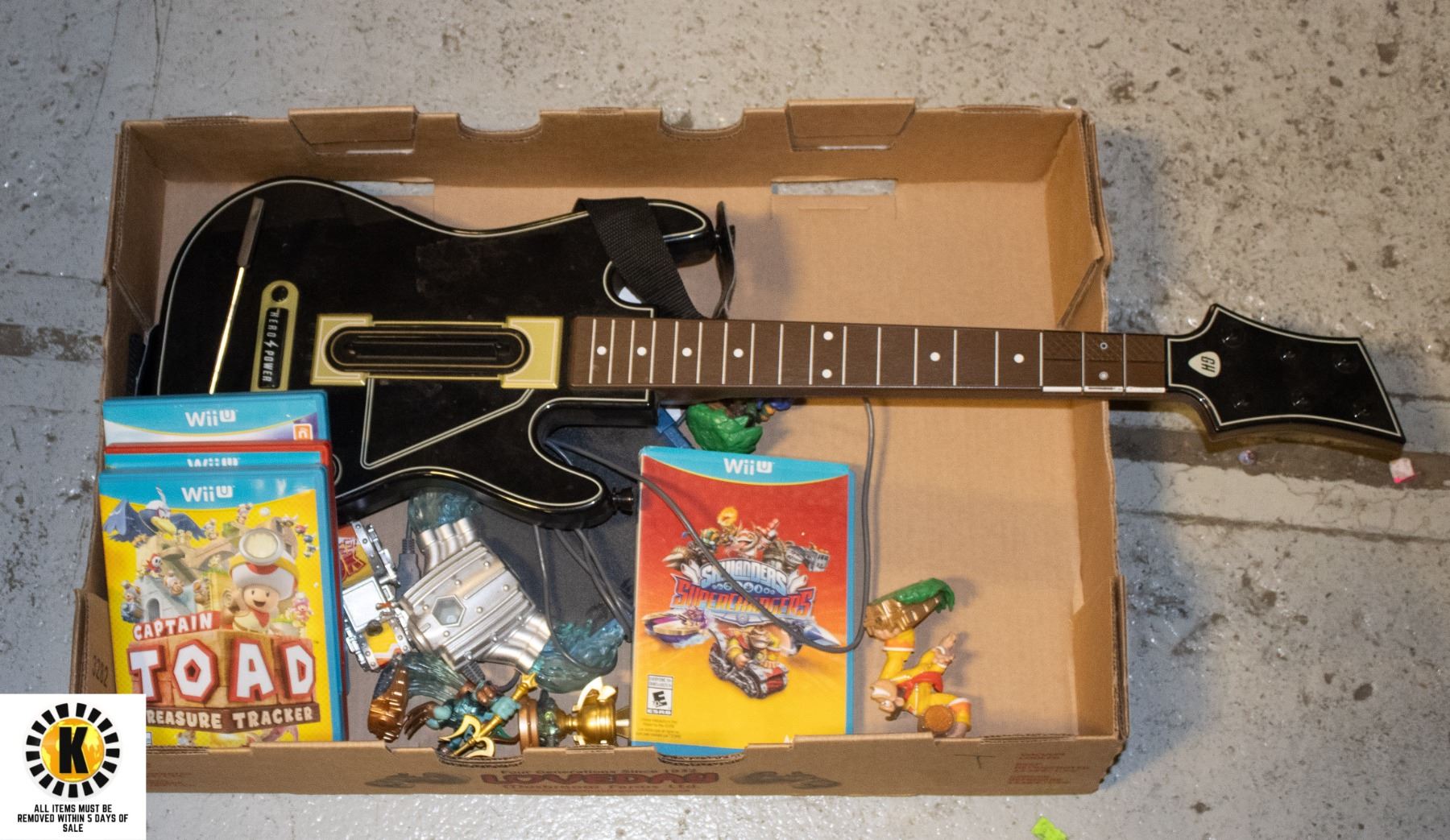 4 WII-U GAMES: MARIO CART 8, CAPTAIN TOAD, SKYLANDERS SUPERCHARGERS WITH ACCESSORIES, GUITAR HERO WITH ACCESSORIES