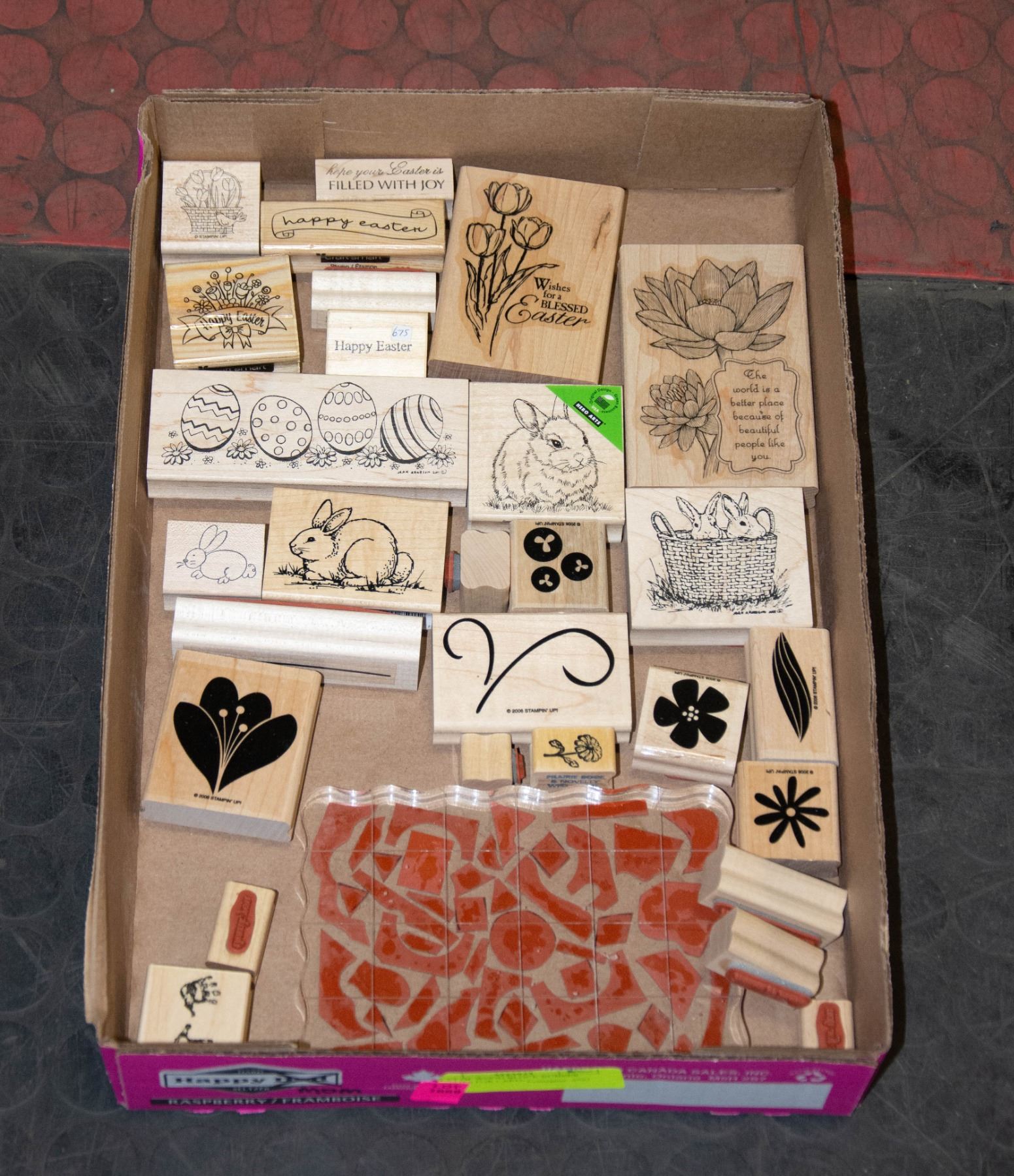 FLAT OF WOOD BLOCK RUBBER STAMPS FOR CARD-