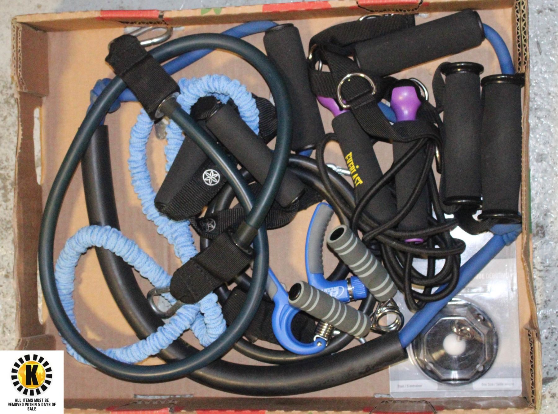 FLAT OF WORKOUT BANDS, EXERCISE EQUIPMENT ETC