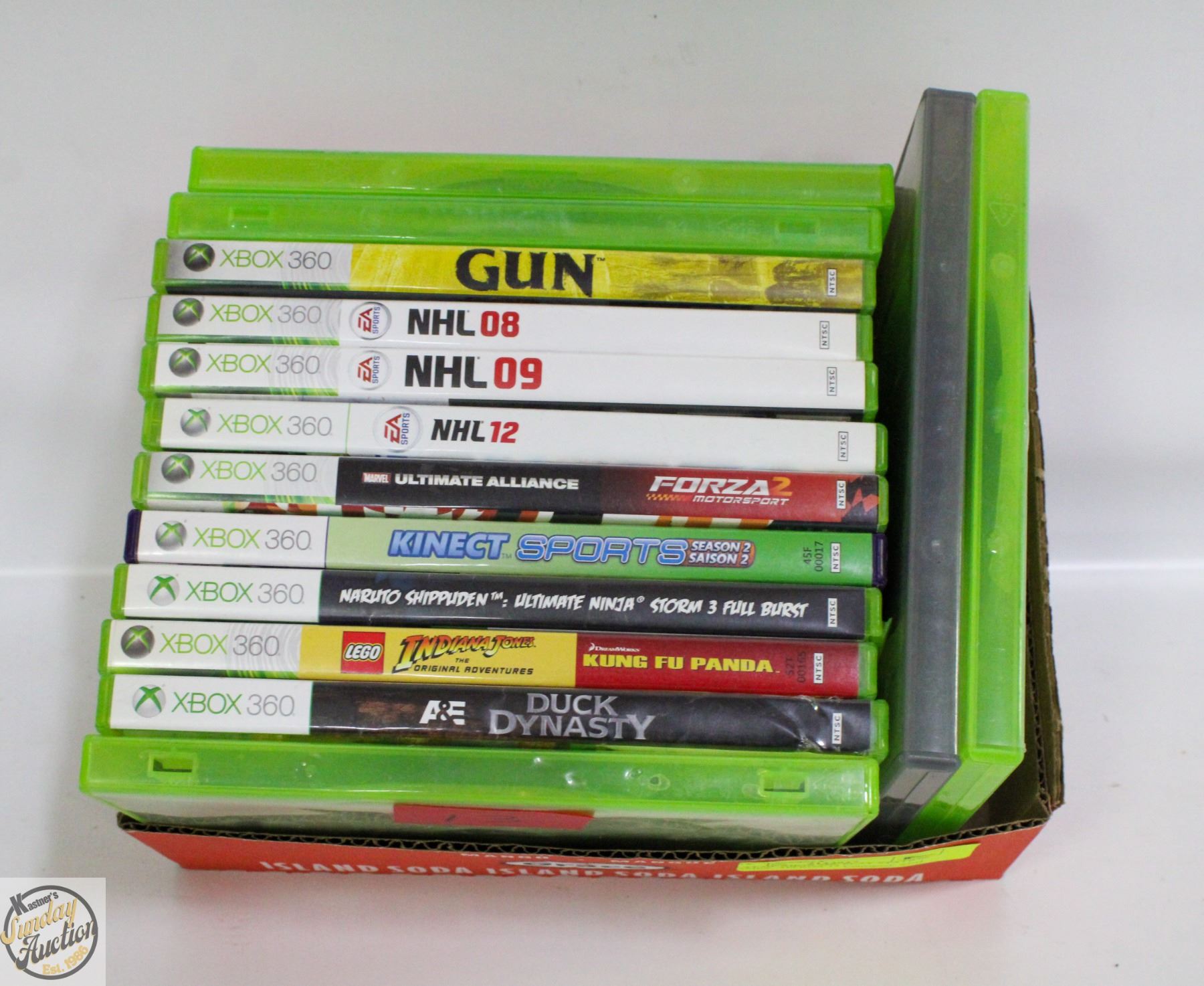 FLAT OF XBOX 360, PLAY STATION GAMES- APPROX 13