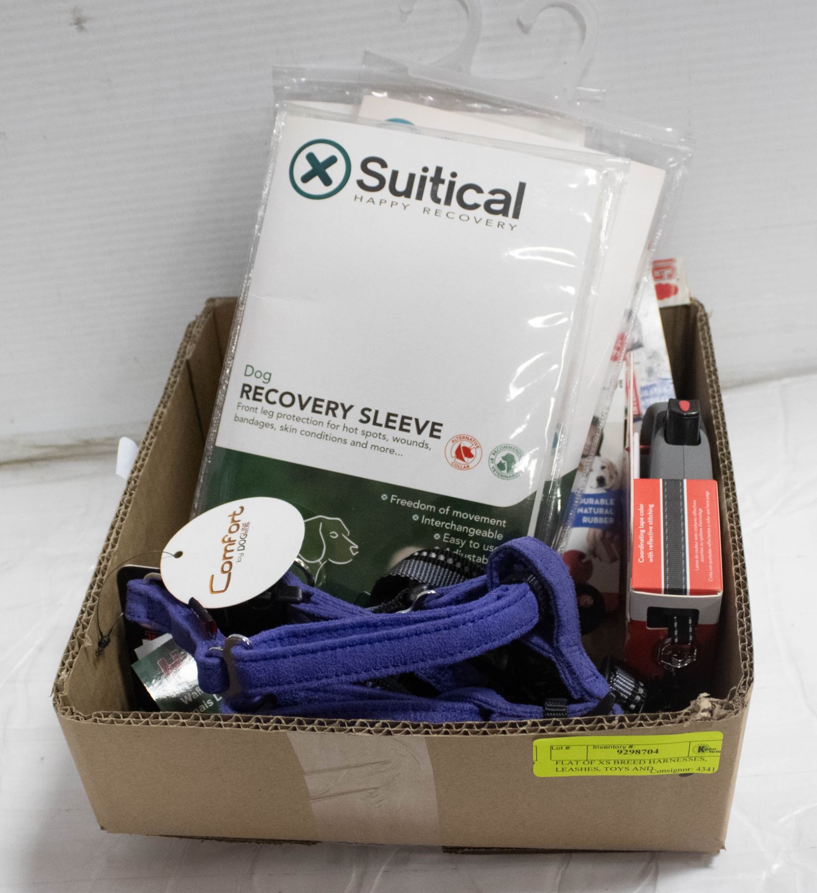 FLAT OF XS BREED HARNESSES, LEASHES, TOYS AND