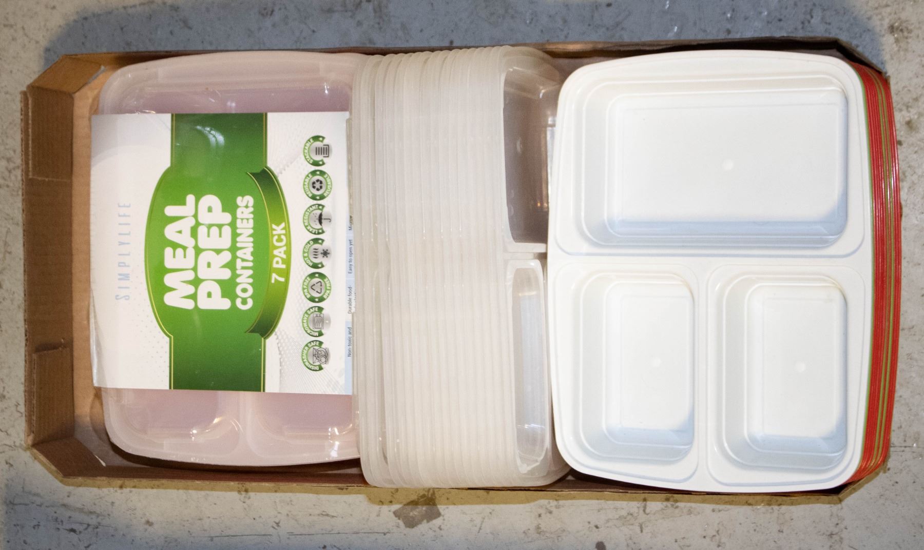 INCL. 7 NEW IN PACK - BPA FREE, DISHWASHER, MICROWAVE AND FREEZER SAFE, FOOD GRADE REUSEABLE PLASTIC, STACKABLE, INCLUDES EXTRA LIDS