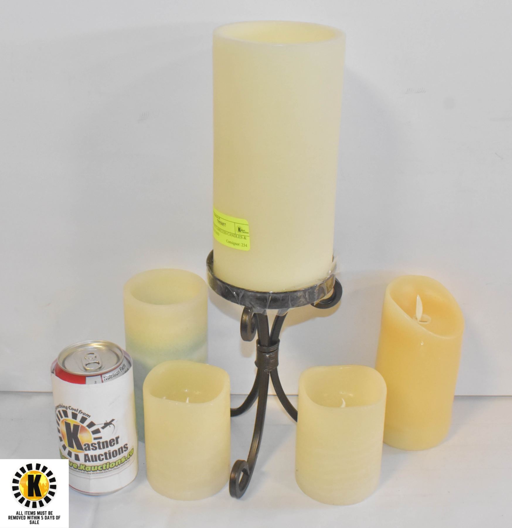 FLAT W/5 FLAMELESS CANDLES & METAL STAND