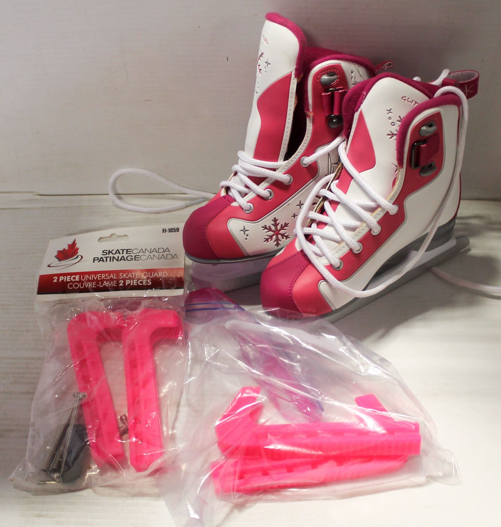FLAT W/ NEW REEBOK YOUTH SIZE 1 SKATES W/ GUARDS