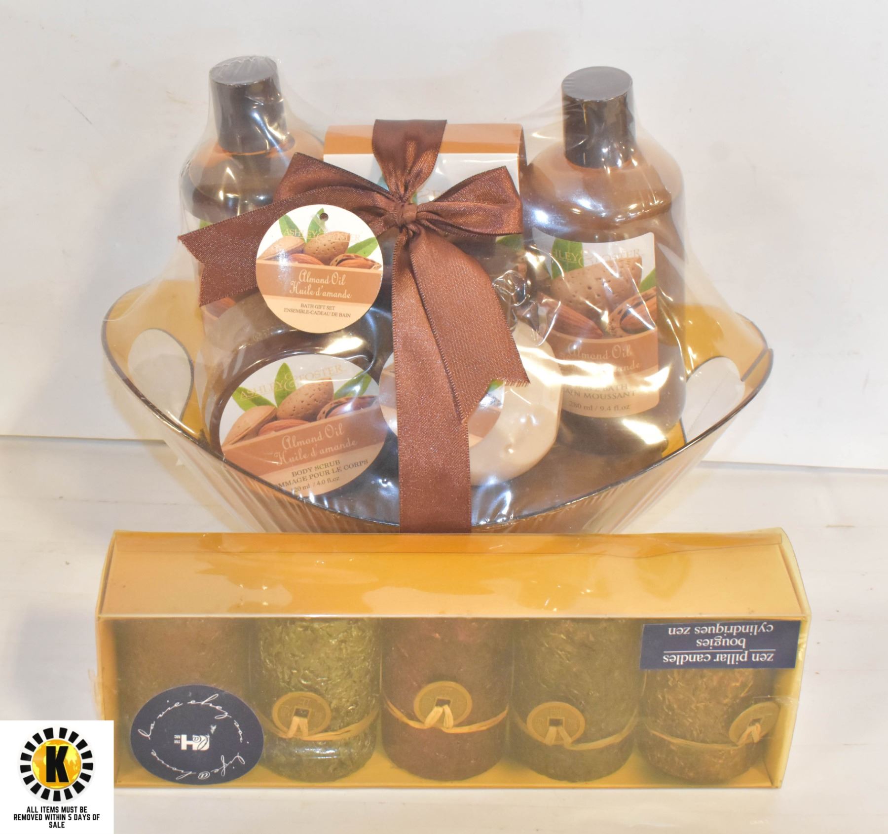 FLAT W/ ZEN PILLAR CANDLE & ALMOND OIL BATH SETS