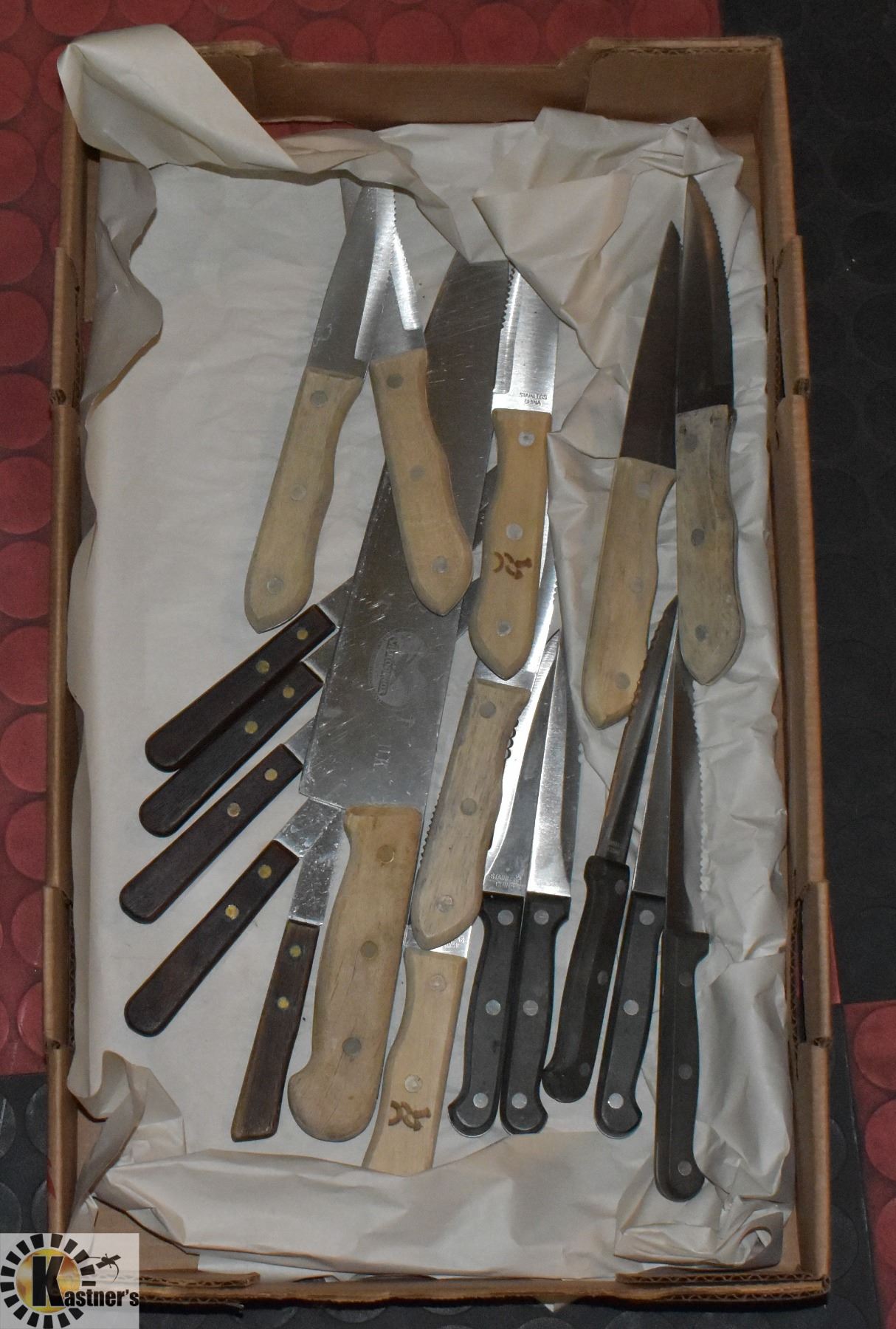 FLAT WITH 18 WOODEN HANDLE KNIVES