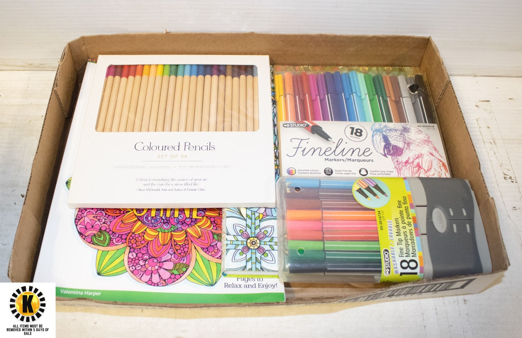 FLAT WITH 3 COLORING SETS PLUS 2 BOOKS