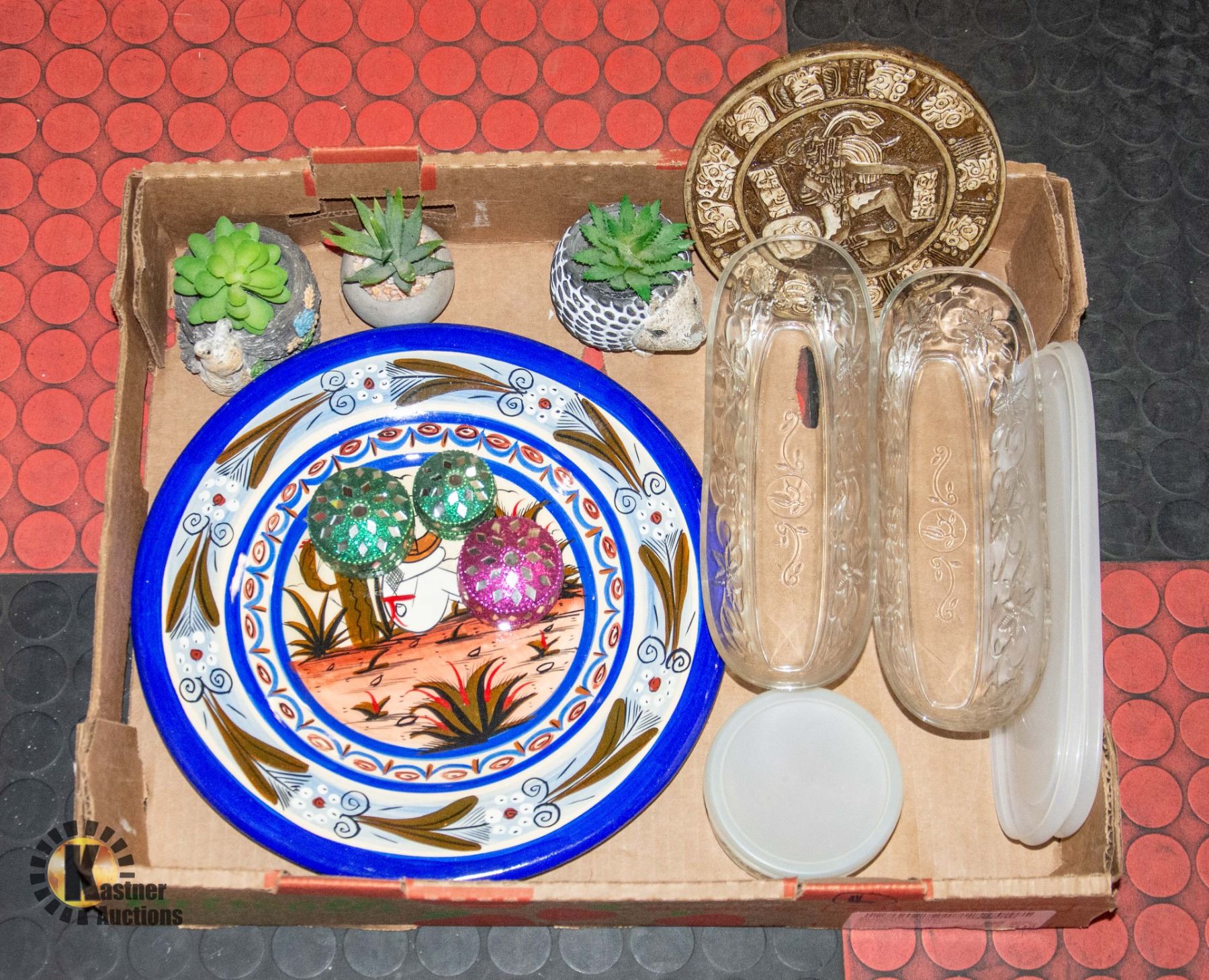LIDS, 3 DECORATIVE PLANTS, 3 MADE IN INDIA STORAGE BOXES AND AZTEC WALL PLAQUE AND DECORATIVE PLATE **ALL ITEMS MUST BE REMOVED BY 5PM SATURDAY, JUNE 1ST 2024. ALL REMAINING ITEMS WILL BE SUBJECT TO A $6.00 PER DAY STORAGE CHARGE. ANY ITEMS REMAINING AFTER MONDAY, JUNE 17TH 2024 WILL BE CONSIDERED FORFEITED. NO REFUNDS WILL BE ISSUED FOR FORFEITED ITEMS. TO SCHEDULE A PICK UP APPOINTMENT CLICK HERE