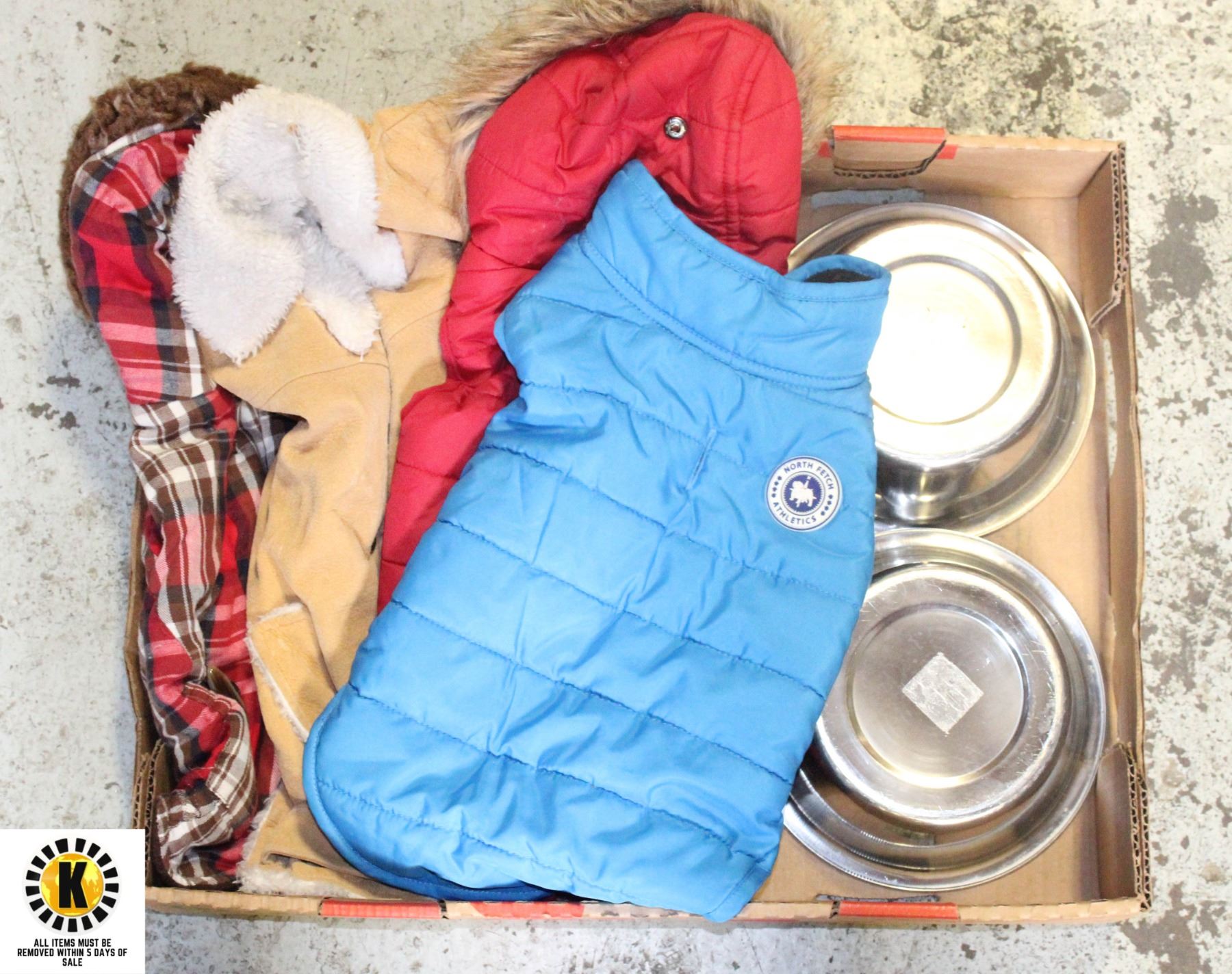 FLAT WITH 4 DOG JACKETS(SMALL) PLUS DOG BOWLS