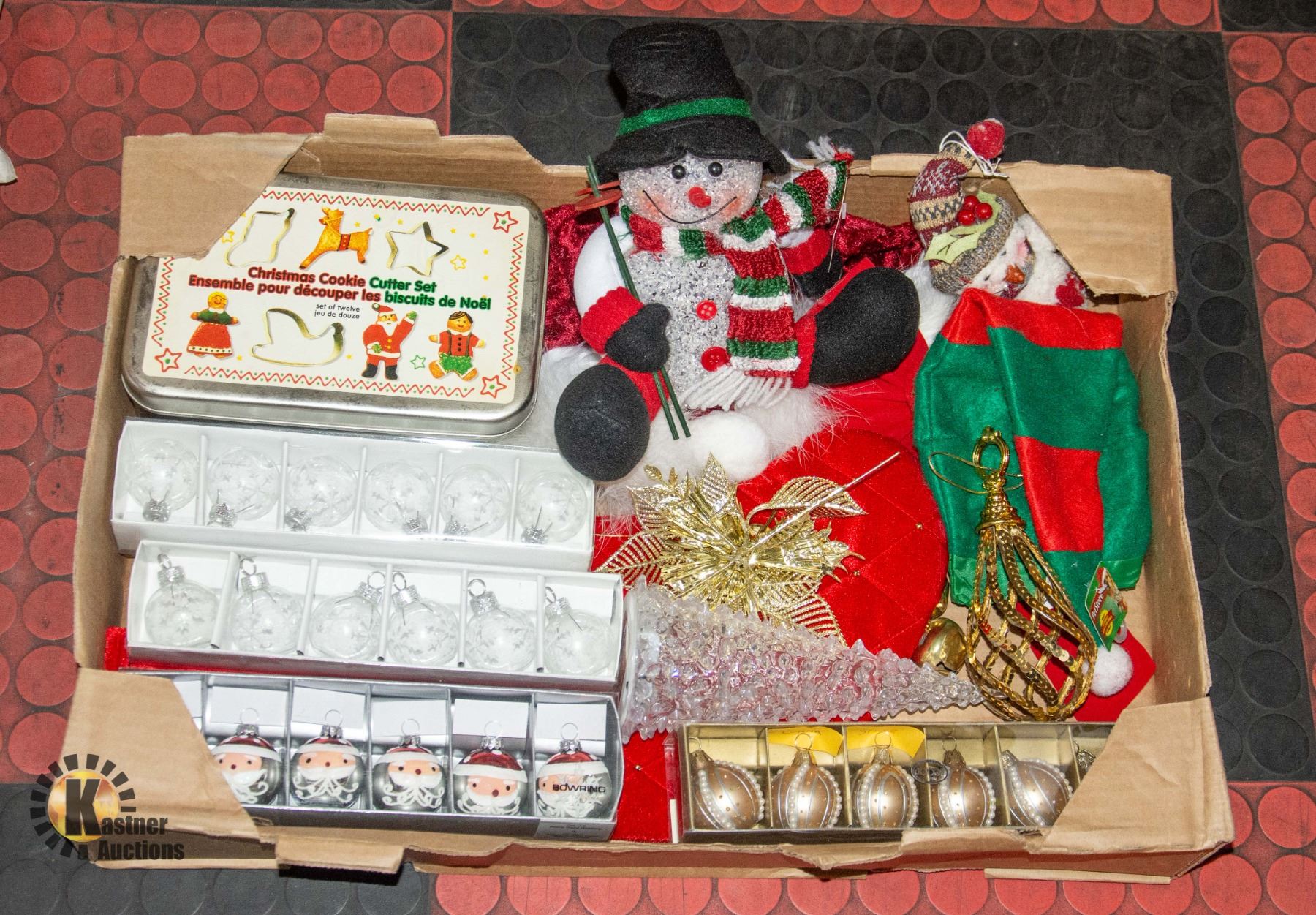 CHRISTMAS TREE BULBS, 12-PIECE CHRISTMAS COOKIE CUTTER SET, STOCKING & SANTA'S HAT, SNOWMAN DECOR, ETC. **ALL ITEMS MUST BE REMOVED BY 5PM SATURDAY, NOVEMBER 30TH 2024. ALL REMAINING ITEMS WILL BE SUBJECT TO A $6.00 PER DAY STORAGE CHARGE. ANY ITEMS REMAINING AFTER MONDAY, DECEMBER 16TH 2024 WILL BE CONSIDERED FORFEITED. NO REFUNDS WILL BE ISSUED FOR FORFEITED ITEMS. TO SCHEDULE A PICK UP APPOINTMENT CLICK HERE