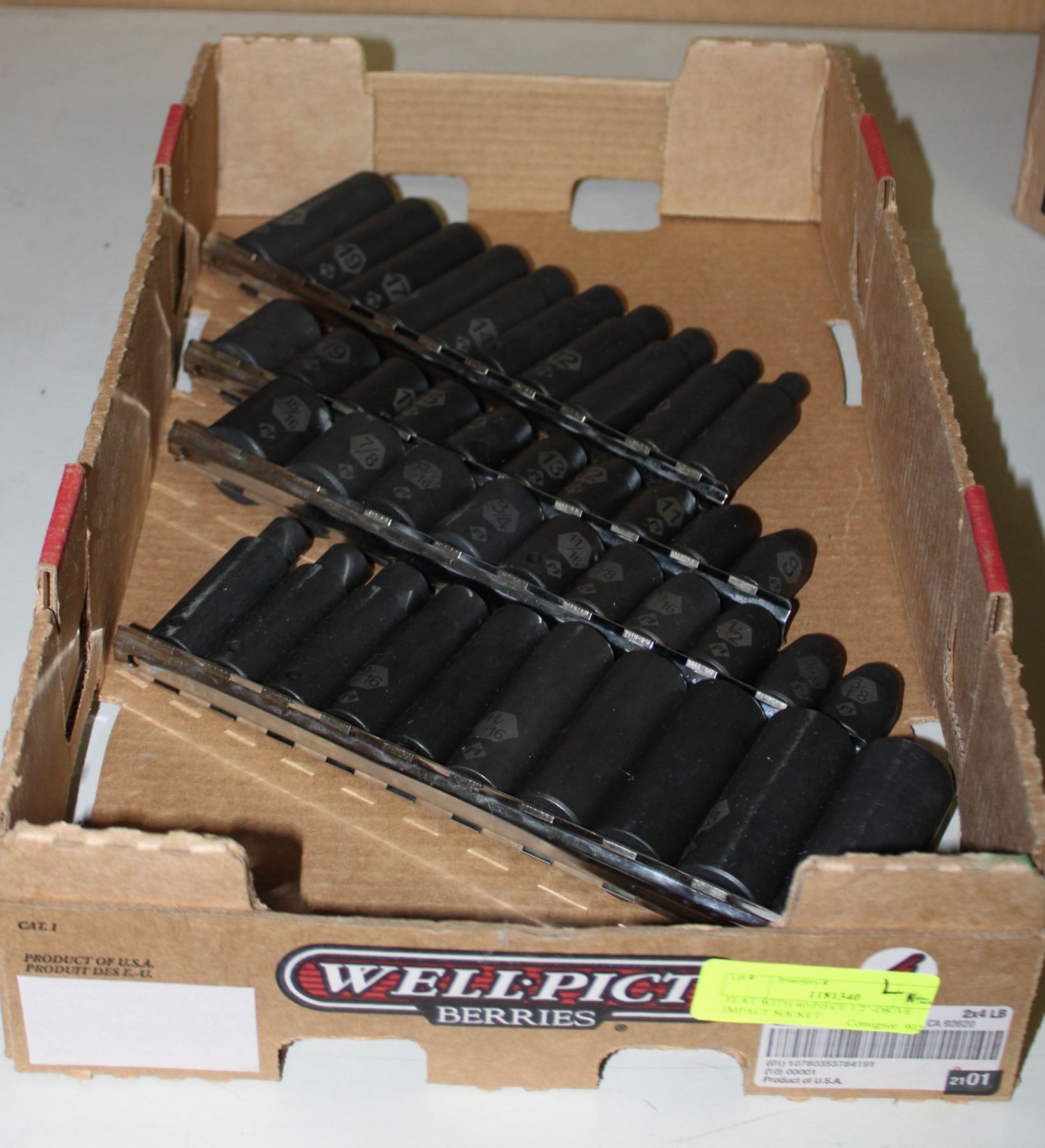SET ON STORAGE SORTING RACKS - SAE AND METRIC, STANDARD AND DEEP SOCKETS **ALL ITEMS MUST BE REMOVED BY 5PM SATURDAY, MARCH 1ST 2025. ALL REMAINING ITEMS WILL BE SUBJECT TO A $6.00 PER DAY STORAGE CHARGE. ANY ITEMS REMAINING AFTER MONDAY, MARCH 17TH 2025 WILL BE CONSIDERED FORFEITED. NO REFUNDS WILL BE ISSUED FOR FORFEITED ITEMS. TO SCHEDULE A PICK UP APPOINTMENT CLICK HERE