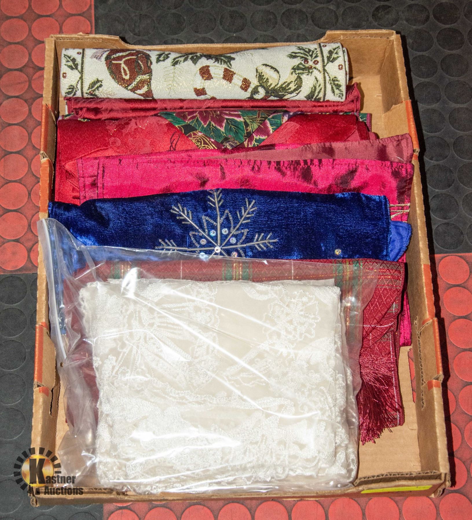 & A BAG WITH 6 EMBROIDERED CHRISTMAS RUNNERS **ALL ITEMS MUST BE REMOVED BY 5PM SATURDAY, NOVEMBER 30TH 2024. ALL REMAINING ITEMS WILL BE SUBJECT TO A $6.00 PER DAY STORAGE CHARGE. ANY ITEMS REMAINING AFTER MONDAY, DECEMBER 16TH 2024 WILL BE CONSIDERED FORFEITED. NO REFUNDS WILL BE ISSUED FOR FORFEITED ITEMS. TO SCHEDULE A PICK UP APPOINTMENT CLICK HERE