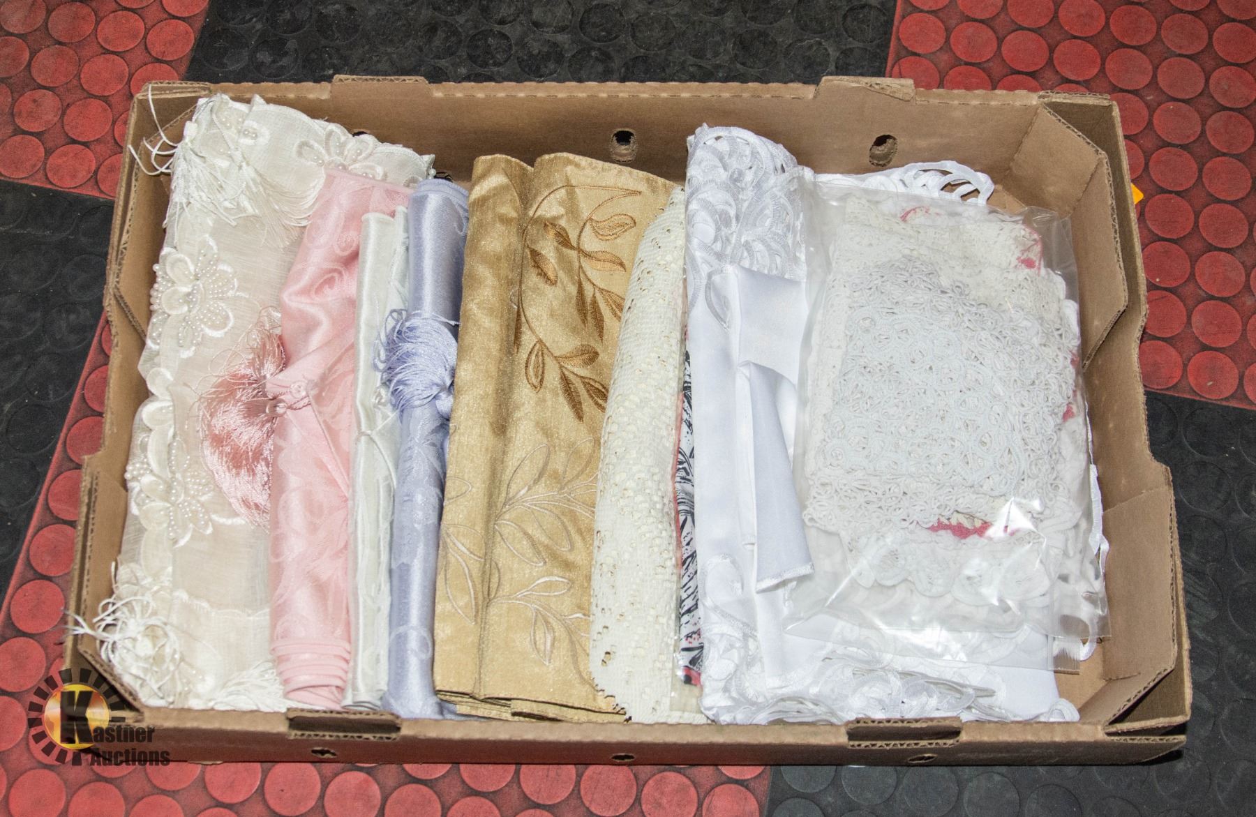 & DESIGNS), 3-PIECE WHITE TABLE CLOTH WITH 2 SIDE ACCENT SQUARES AND A BAG OF DOILIES **ALL ITEMS MUST BE REMOVED BY 5PM SATURDAY, FEBRUARY 8TH 2025. ALL REMAINING ITEMS WILL BE SUBJECT TO A $6.00 PER DAY STORAGE CHARGE. ANY ITEMS REMAINING AFTER MONDAY, MARCH 3RD 2025 WILL BE CONSIDERED FORFEITED. NO REFUNDS WILL BE ISSUED FOR FORFEITED ITEMS. TO SCHEDULE A PICK UP APPOINTMENT CLICK HERE