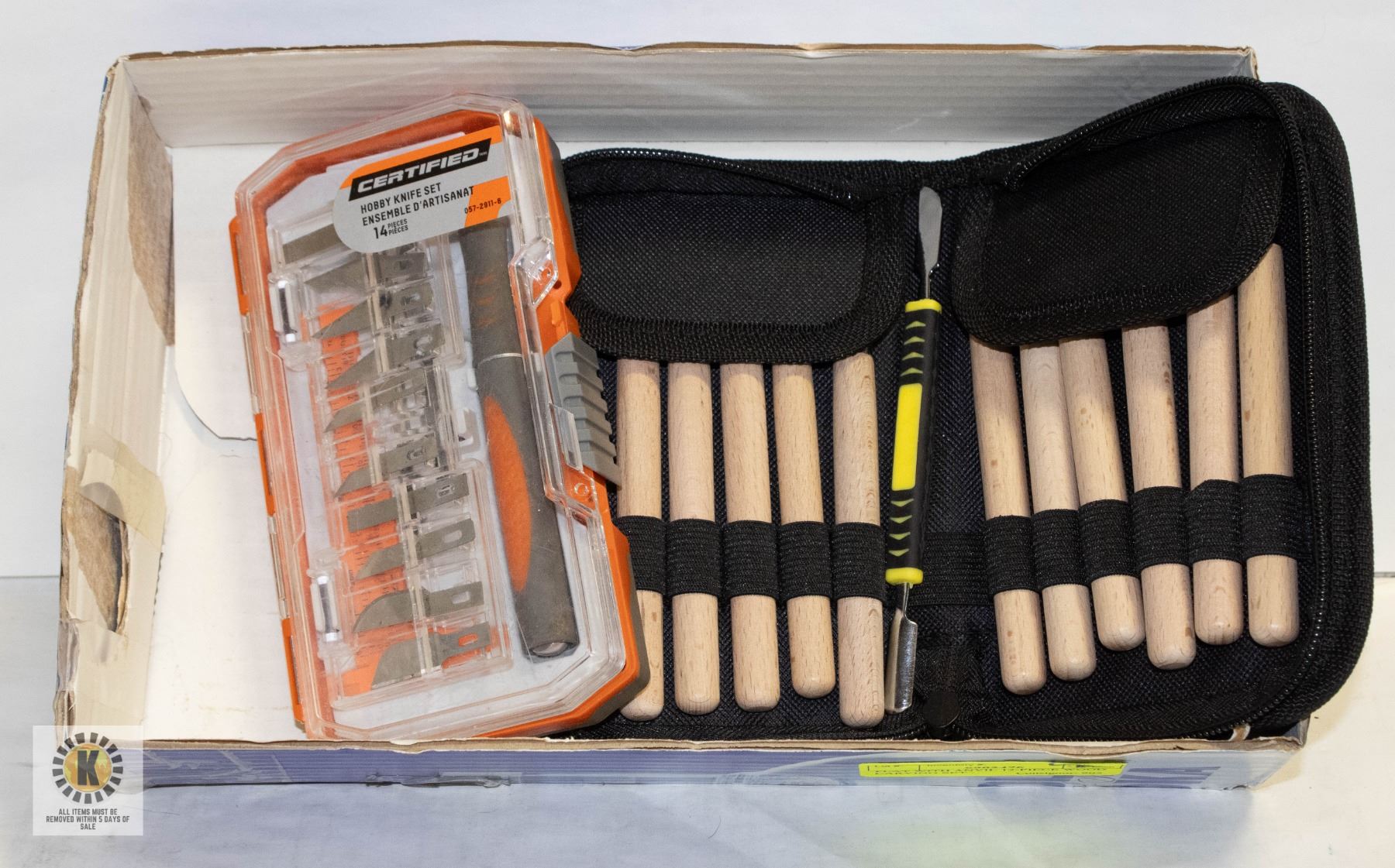 INCLUDES 12 UNIQUE TOOLS IN ZIP-UP ORGANIZER, CERTIFIED 14-PIECE HOBBY KNIFE SET IN HARD CASE STORAGE BOX **ALL ITEMS MUST BE REMOVED BY 5PM SATURDAY, APRIL 12TH 2025. ALL REMAINING ITEMS WILL BE SUBJECT TO A $6.00 PER DAY STORAGE CHARGE. ANY ITEMS REMAINING AFTER MONDAY, APRIL 28TH 2025 WILL BE CONSIDERED FORFEITED. NO REFUNDS WILL BE ISSUED FOR FORFEITED ITEMS. TO SCHEDULE A PICK UP APPOINTMENT CLICK HERE