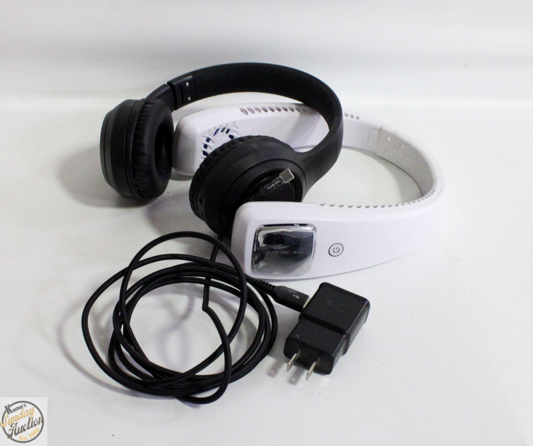 COOLING FAN - 3-SPEED, ADJUSTABLE NECK AND SET OF OVER-EAR PADDED BLUETOOTH HEADPHONES, RECHARGEABLE, ADJUSTABLE, HAS INPUT PORT FOR WIRED CONNECTION - INCLUDES SAMSUNG LIGHTNING CHARGER AND NYS LIFE CHARGE CORD (ALL WORKING) **ALL ITEMS MUST BE REMOVED BY 5PM SATURDAY, NOVEMBER 1ST 2025. ALL REMAINING ITEMS WILL BE SUBJECT TO A $6.00 PER DAY STORAGE CHARGE. ANY ITEMS REMAINING AFTER MONDAY, NOVEMBER 17TH 2025 WILL BE CONSIDERED FORFEITED. NO REFUNDS WILL BE ISSUED FOR FORFEITED ITEMS. TO SCHEDULE A PICK UP APPOINTMENT CLICK HERE