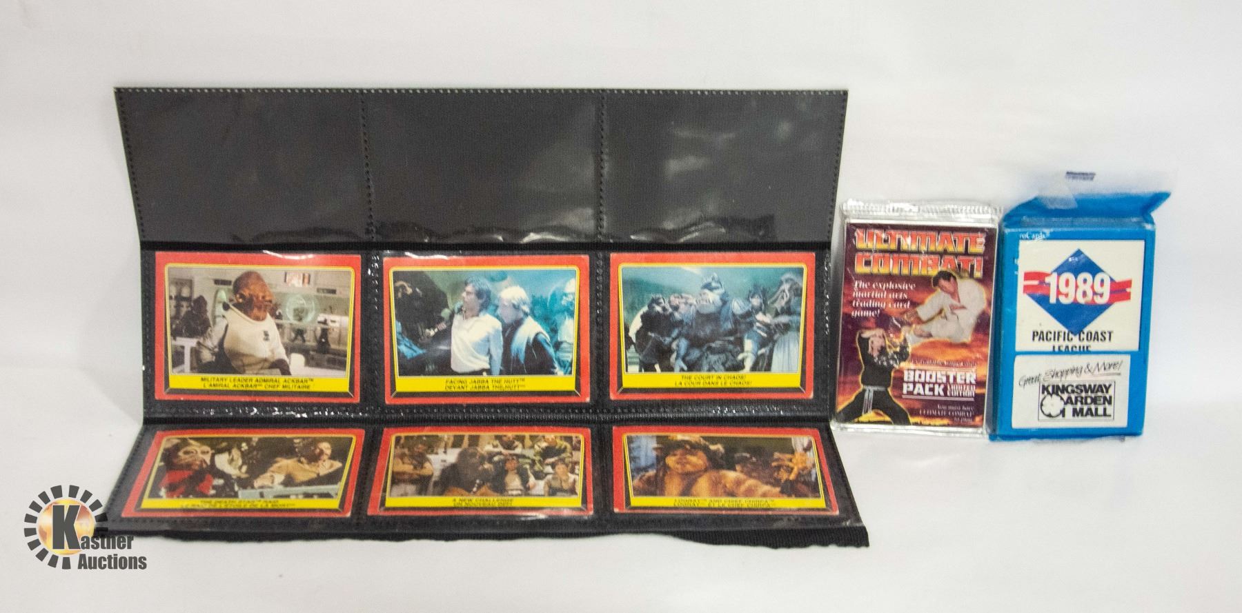 INCL. 10 - "RETURN OF THE JEDI" (1983) CARDS, 3 GARBAGE PAIL KIDS CARDS, UNOPENED ULTIMATE COMBAT CARD PACK AND UNOPENED 1989 PCL CARD PACK **ALL ITEMS MUST BE REMOVED BY 5PM SATURDAY, DECEMBER 7TH 2024. ALL REMAINING ITEMS WILL BE SUBJECT TO A $6.00 PER DAY STORAGE CHARGE. ANY ITEMS REMAINING AFTER MONDAY, DECEMBER 23RD 2024 WILL BE CONSIDERED FORFEITED. NO REFUNDS WILL BE ISSUED FOR FORFEITED ITEMS. TO SCHEDULE A PICK UP APPOINTMENT CLICK HERE
