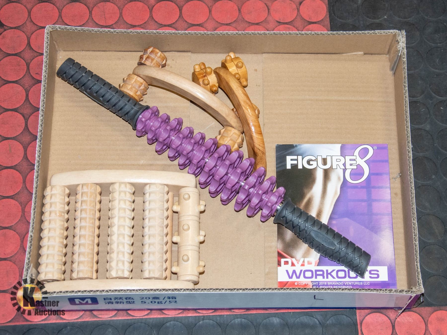 MASSAGE TOOLS INCL. FOOT MASSAGE ROLLER, DUAL HANDLE ROLLER, 2 SINGLE ROLLERS, FIGURE 8 DVD WORKOUTS **ALL ITEMS MUST BE REMOVED BY 5PM SATURDAY, DECEMBER 7TH 2024. ALL REMAINING ITEMS WILL BE SUBJECT TO A $6.00 PER DAY STORAGE CHARGE. ANY ITEMS REMAINING AFTER MONDAY, DECEMBER 23RD 2024 WILL BE CONSIDERED FORFEITED. NO REFUNDS WILL BE ISSUED FOR FORFEITED ITEMS. TO SCHEDULE A PICK UP APPOINTMENT CLICK HERE