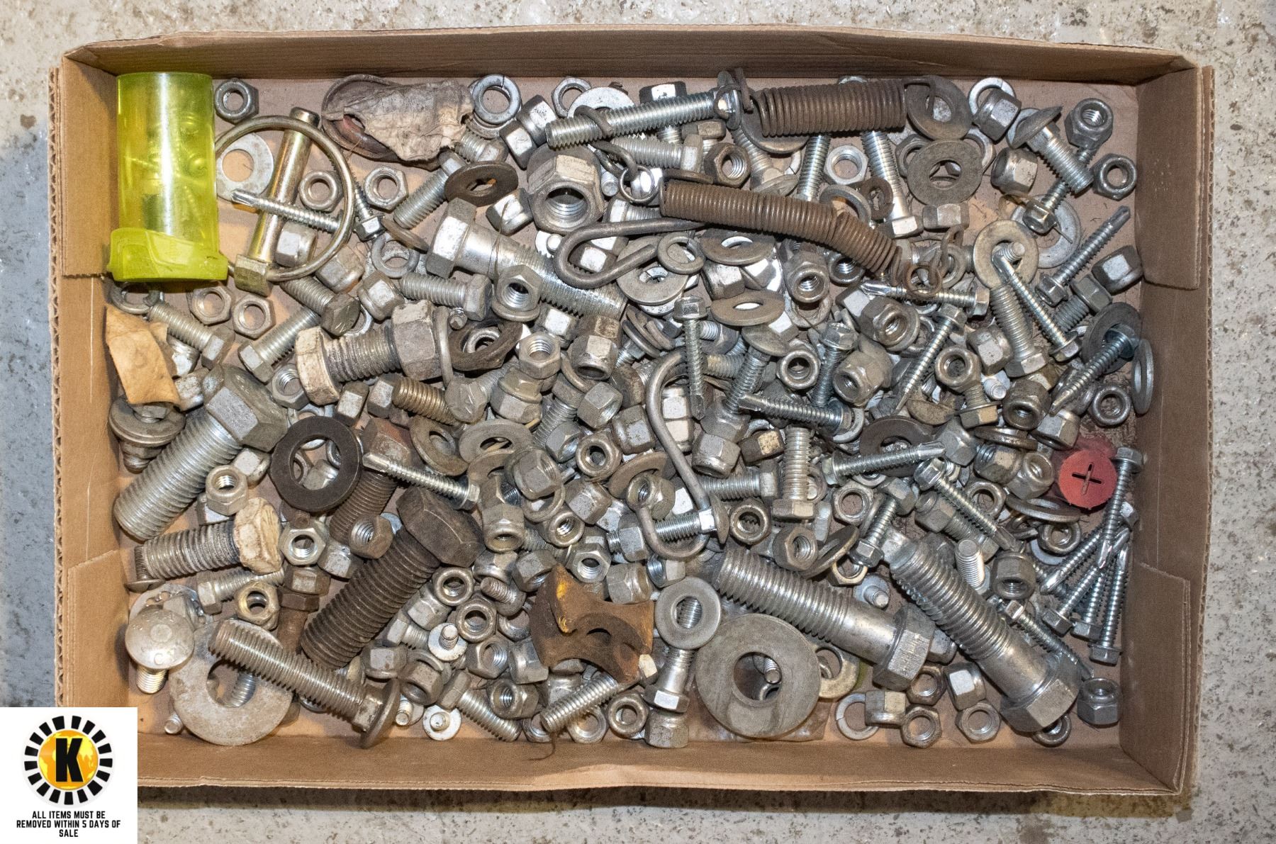 FLAT WITH ASSORTMENT OF LARGE NUTS & BOLTS