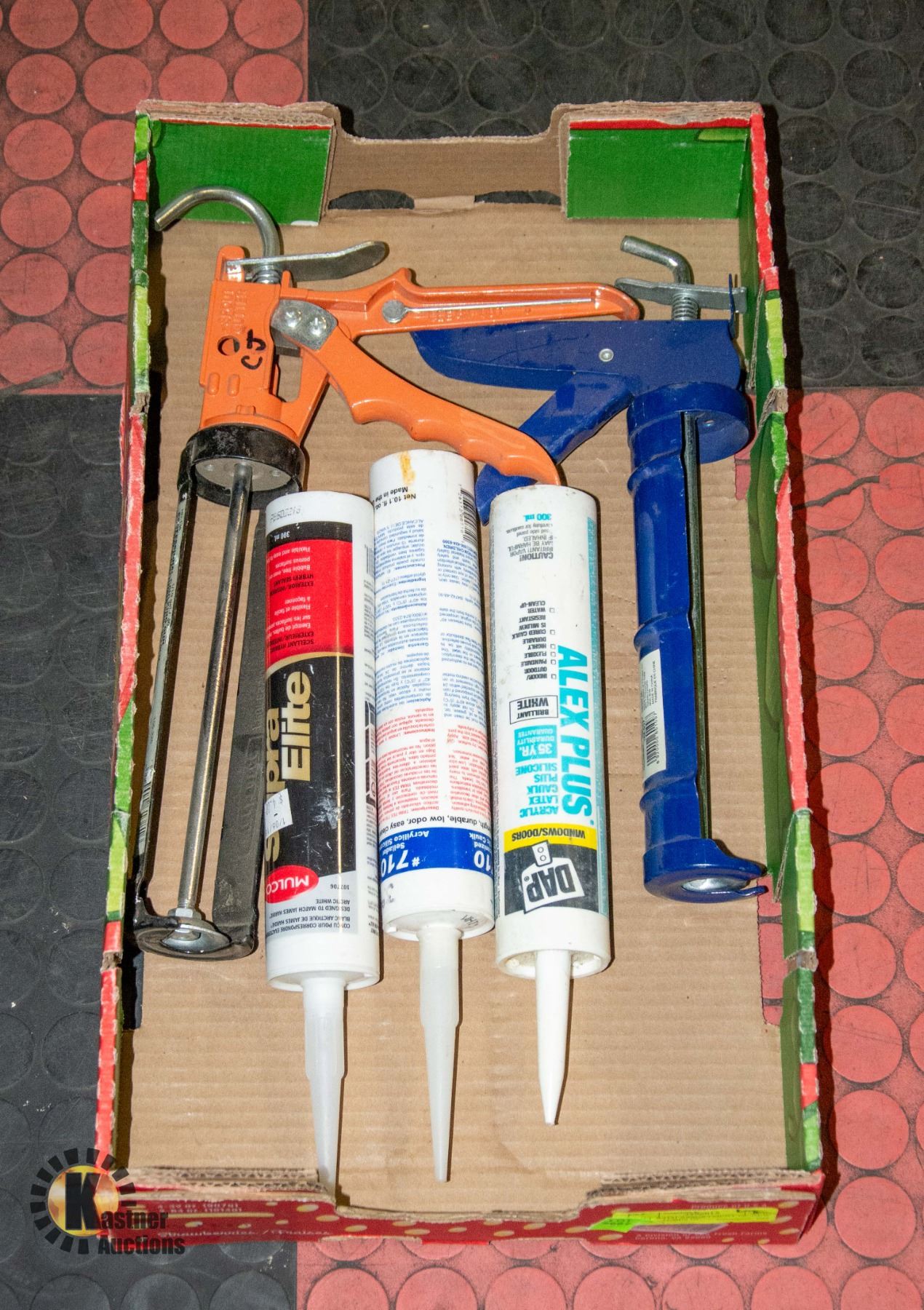TRIMTEX ADHESIVE, DAP ACRYLIC LATEX CAULK, SUPRA ELITE INTERIOR/EXTERIOR SEALANT INCLUDES 2 STYLES OF CAULKING GUNS **SHIPPING NOT AVAILABLE** **ALL ITEMS MUST BE REMOVED BY 5PM SATURDAY, MAY 11THTH 2024. ALL REMAINING ITEMS WILL BE SUBJECT TO A $6.00 PER DAY STORAGE CHARGE. ANY ITEMS REMAINING AFTER MONDAY, MAY 27TH 2024 WILL BE CONSIDERED FORFEITED. NO REFUNDS WILL BE ISSUED FOR FORFEITED ITEMS. TO SCHEDULE A PICK UP APPOINTMENT CLICK HERE