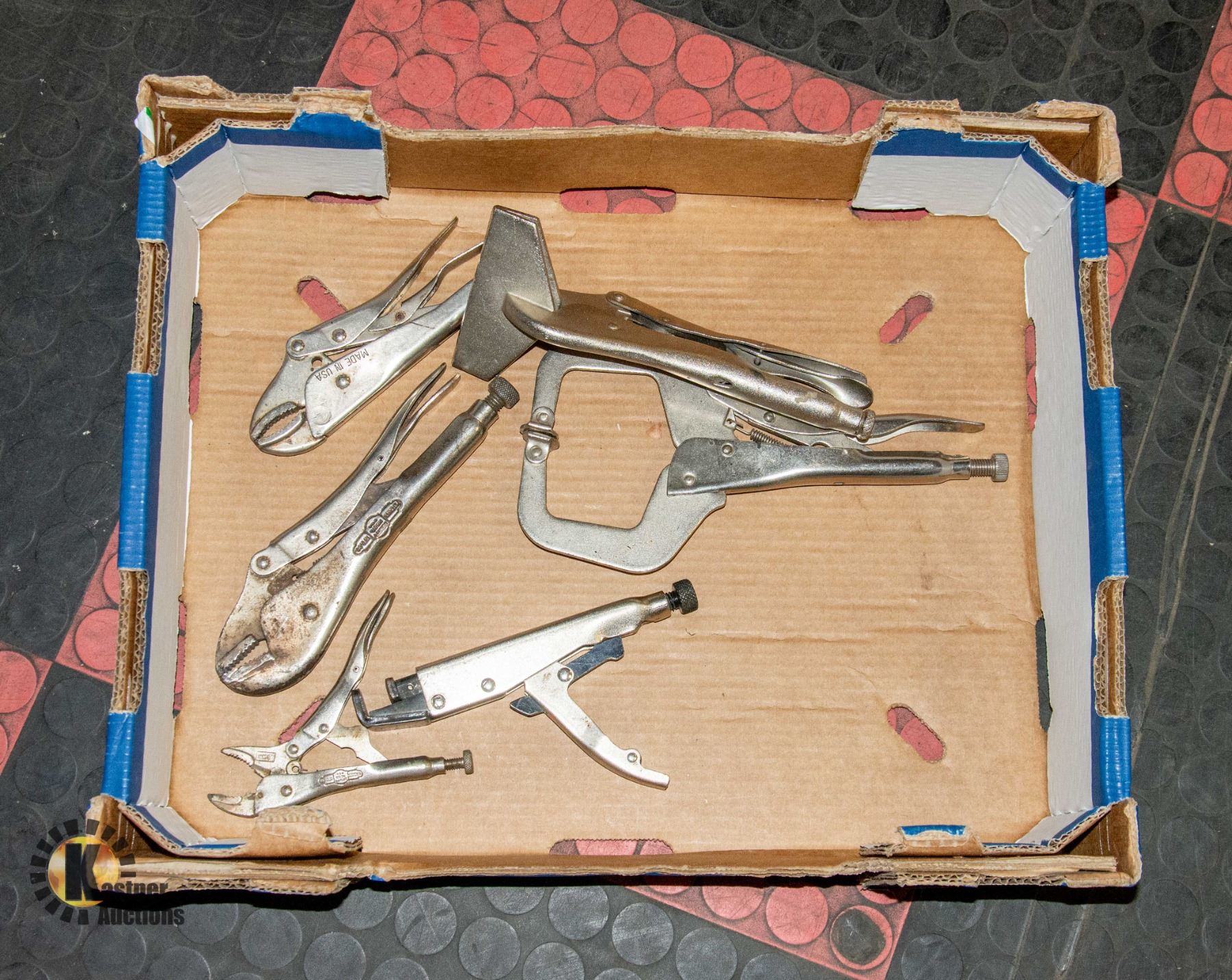 6 SIZES AND TYPES INCL. LARGE FLAT CLAMP, LARGE EXTENSION CLAMP, 3 SIZES OF STANDARD VISE GRIPS AND NARROW PRESSURE CLAMP **ALL ITEMS MUST BE REMOVED BY 5PM SATURDAY, FEBRUARY 17TH 2024. ALL REMAINING ITEMS WILL BE SUBJECT TO A $6.00 PER DAY STORAGE CHARGE. ANY ITEMS REMAINING AFTER MONDAY, MARCH 4TH, 2023 WILL BE CONSIDERED FORFEITED. NO REFUNDS WILL BE ISSUED FOR FORFEITED ITEMS. TO SCHEDULE A PICK UP APPOINTMENT CLICK HERE