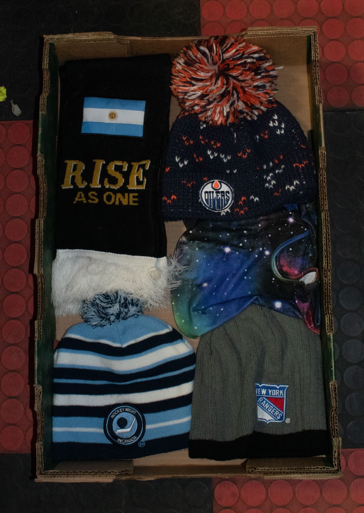 SPORTSWEAR INCL. OILER'S BLUE & ORANGE TOQUE, NEW YORK RANGERS TOQUE, FIFA WORLD CUP ARGENTINA "RISE AS ONE" SCARF, HOCKEY NIGHT IN CANADA TOQUE, ETC. **ALL ITEMS MUST BE REMOVED BY 5PM SATURDAY, JANUARY 28TH 2023. **ALL REMAINING ITEMS WILL BE SUBJECT TO A $6.00 PER DAY STORAGE CHARGE. ANY ITEMS REMAINING AFTER MONDAY, FEBRUARY 13TH, 2023 WILL BE CONSIDERED FORFEITED. NO REFUNDS WILL BE ISSUED FOR FORFEITED ITEMS. TO SCHEDULE A PICK UP APPOINTMENT CLICK HERE