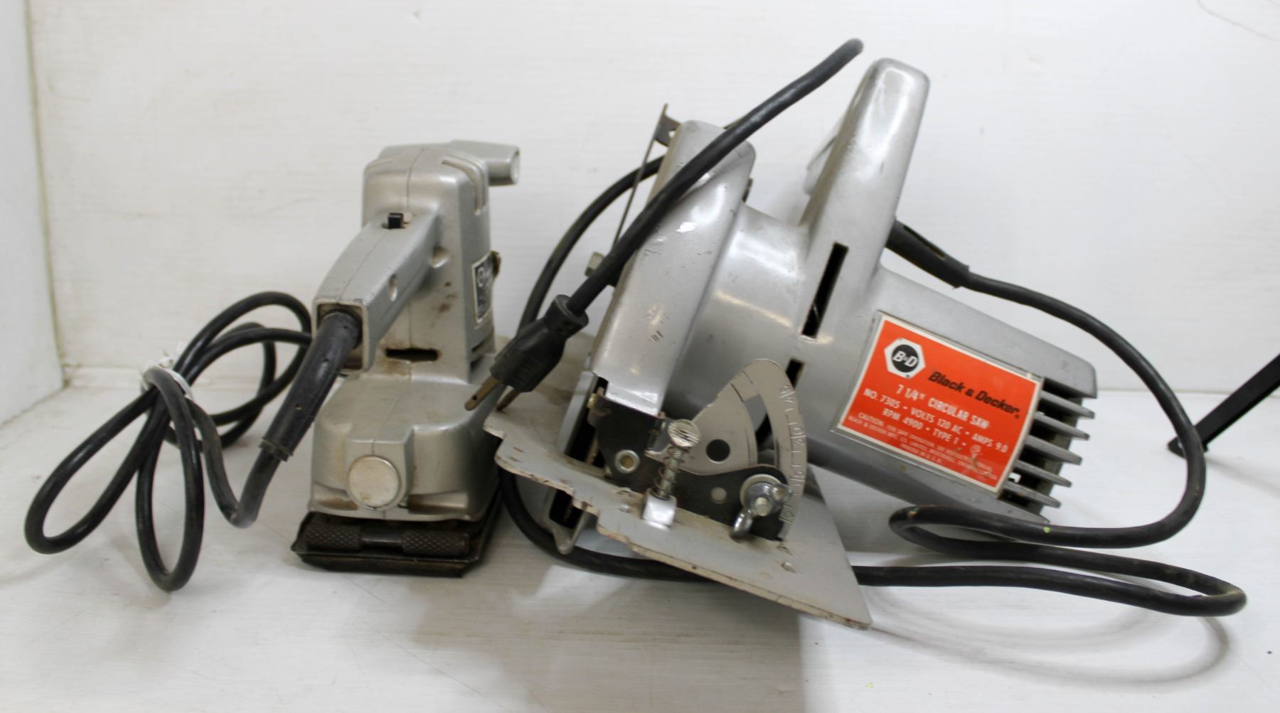 SANDER AND BLACK & DECKER 7 1/4 INCH CIRCULAR SAW - BOTH HEAVY DUTY METAL BODY TOOLS (WORKING)