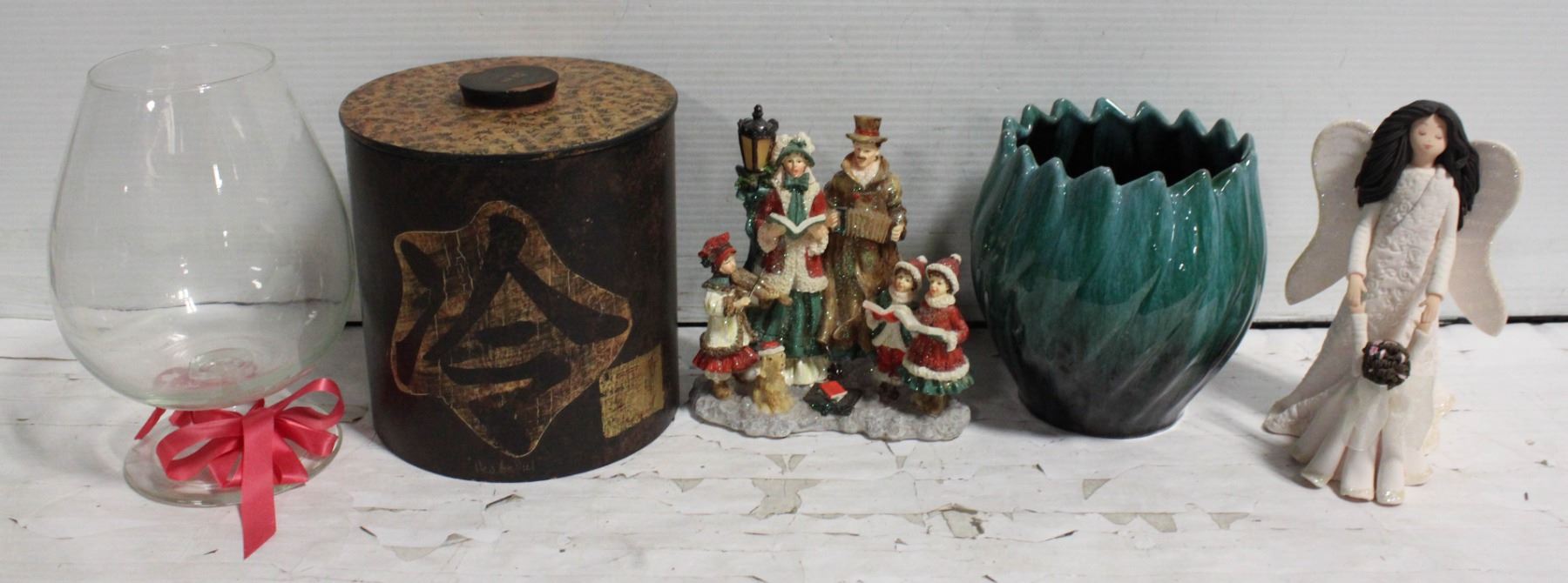 FLAT WITH BLUE MOUNTAIN POTTERY, CANISTER,