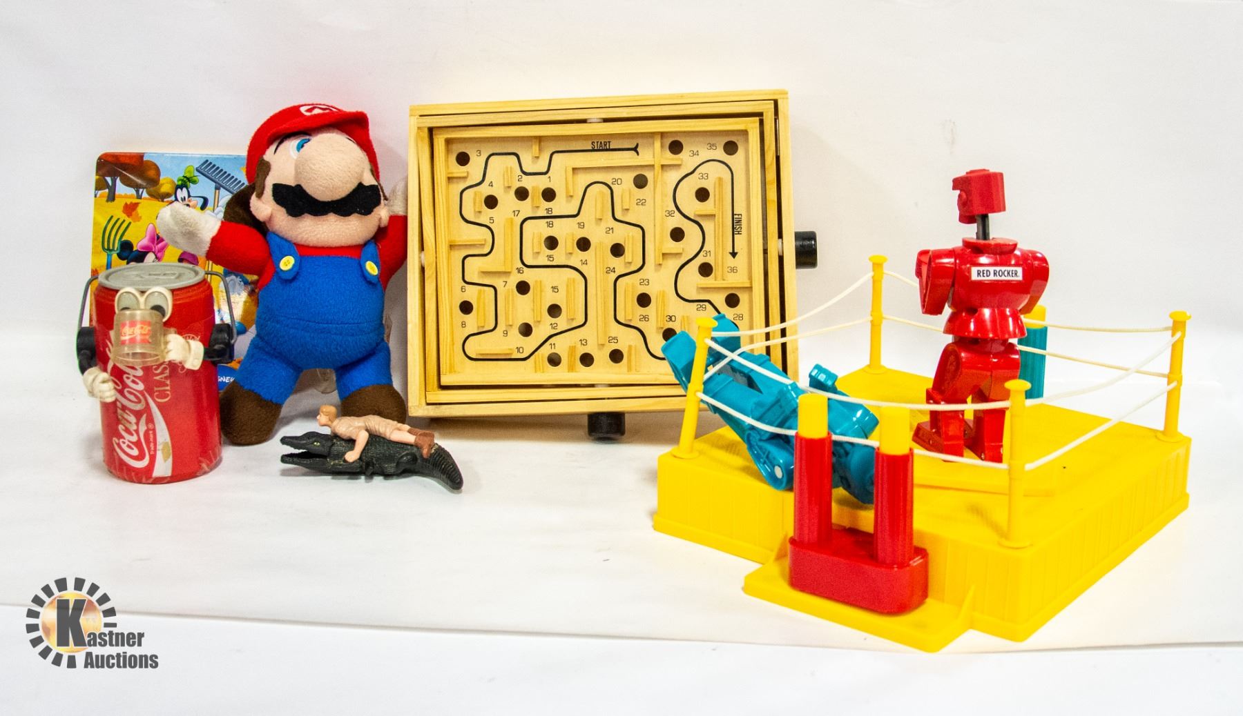 TOYS INCL. ROCKEM-SOCKEM BOXING (WKG.), COKE CLASSIC COIN BANK, WOOD LABYRINTH GAME, SUPER MARIO TOY, STEVE IRWIN ON WIND-UP CROCODILE (WORKING), ETC. **ALL ITEMS MUST BE REMOVED BY 5PM SATURDAY, JUNE 17TH 2023. ALL REMAINING ITEMS WILL BE SUBJECT TO A $6.00 PER DAY STORAGE CHARGE. ANY ITEMS REMAINING AFTER MONDAY, JULY 3RD, 2023 WILL BE CONSIDERED FORFEITED. NO REFUNDS WILL BE ISSUED FOR FORFEITED ITEMS. TO SCHEDULE A PICK UP APPOINTMENT CLICK HERE